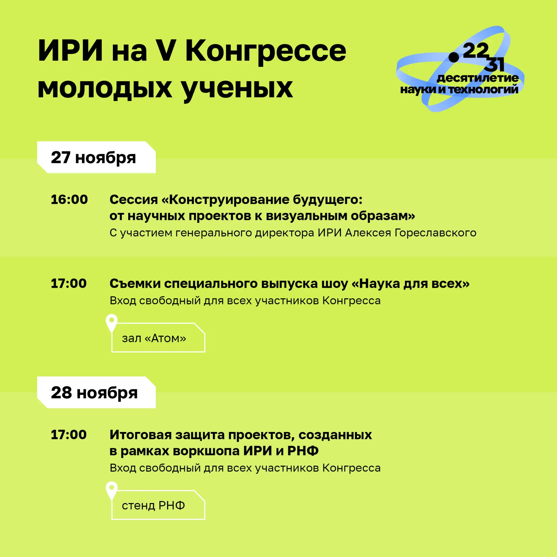 И мы тоже там будем! В программе — интенсив для ученых и создателей контента, дискуссии с участием спикеров ИРИ и съемки спецвыпуска шоу «Наука для всех». Полный список мероприятий смотрите в расписании ⬆️