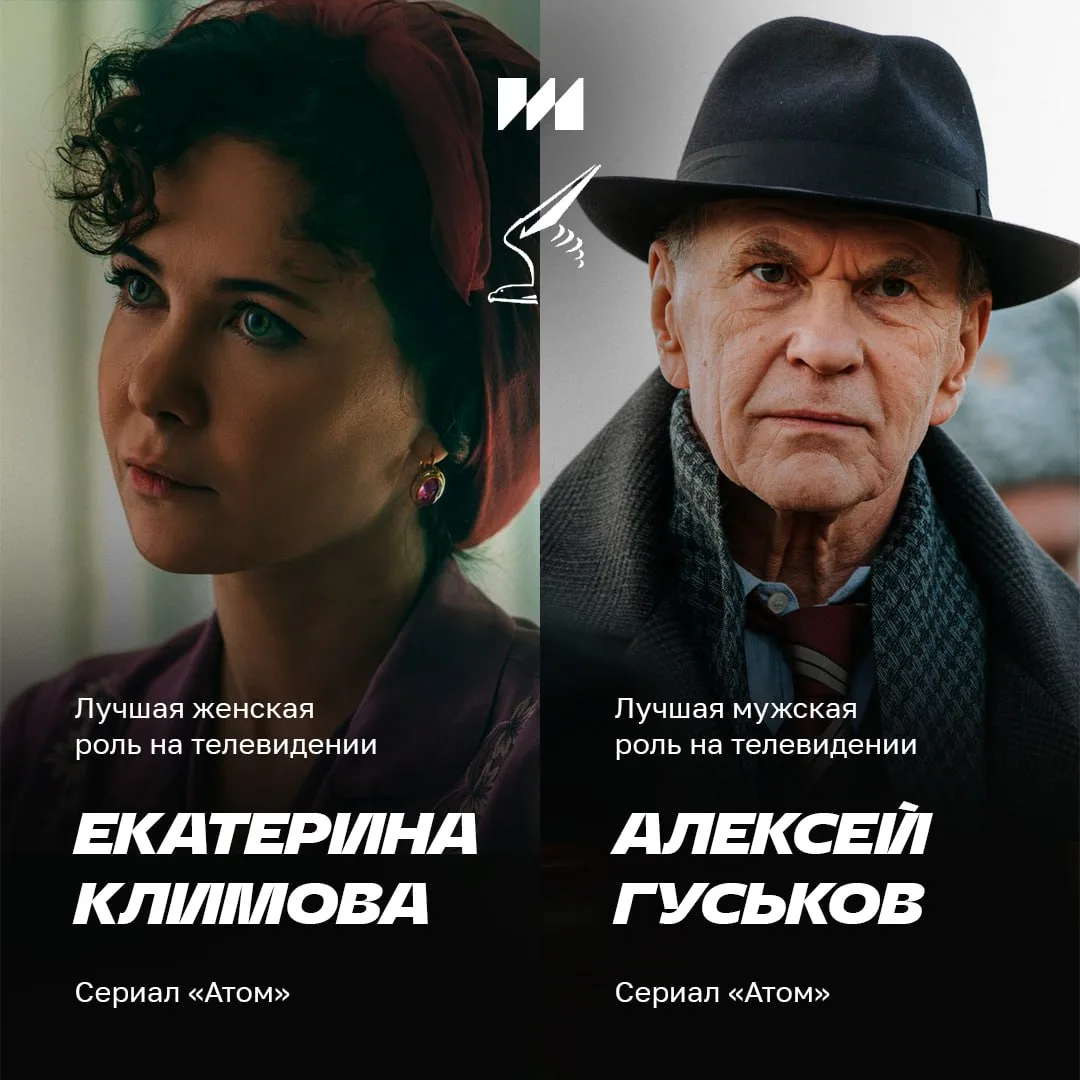 🏆Сериал о разработке советского атомного проекта «Атом» — лауреат премии в номинации «Лучший телевизионный сериал». Актеры Алексей Гуськов и Екатерина Климова получили статуэтки за лучшую мужскую и женскую роли на телевидении.