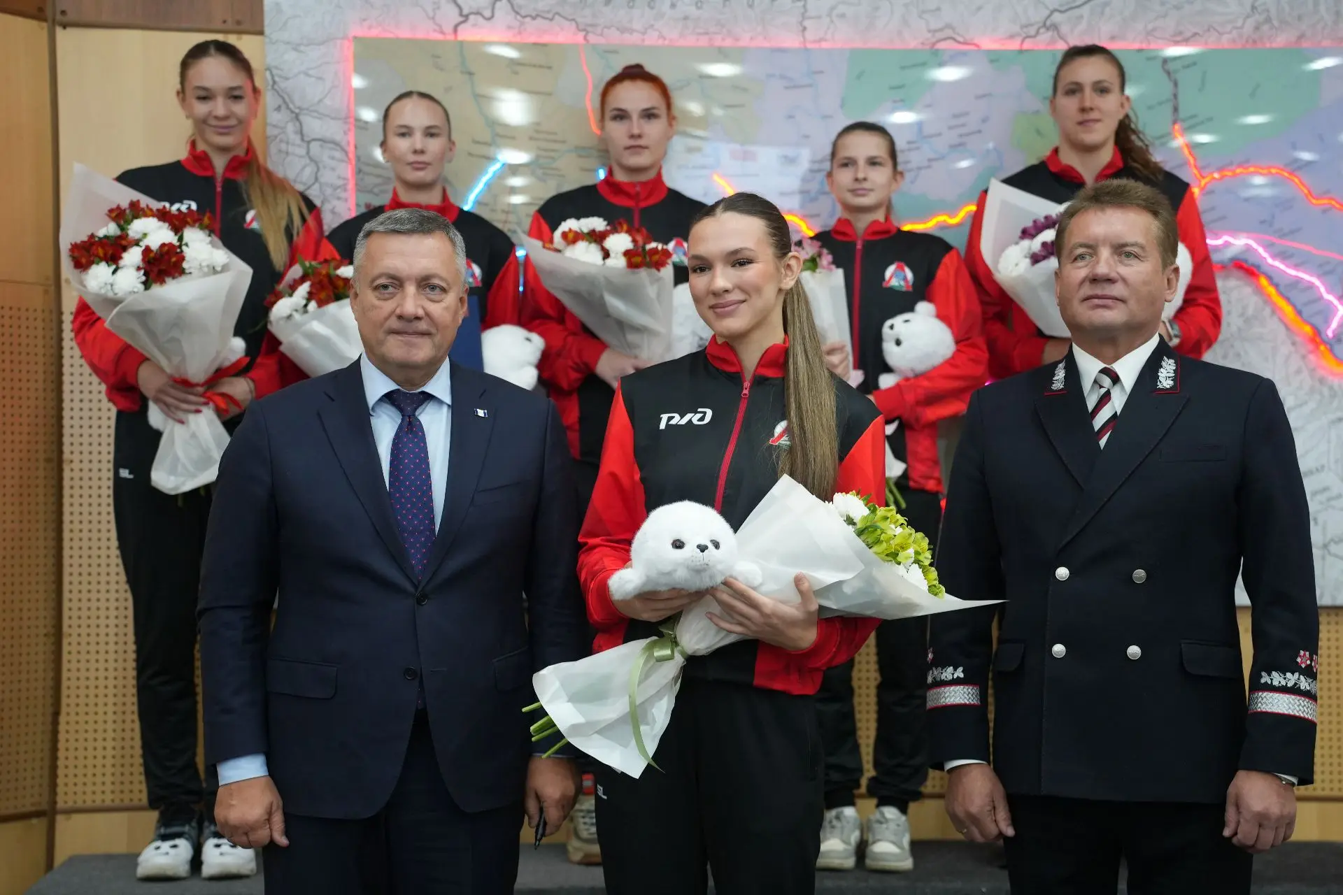 🏐 Перед предстоящим сезоном состоялась встреча Губернатора Приангарья Игоря Кобзева, заместителя генерального директора ОАО «РЖД» – начальника Восточно-Сибирской железной дороги Василия Фролова, федерального инспектора по Иркутской области Алексея Калинина с командой и руководством женского волейбольного клуба «Локомотив-Ангара».