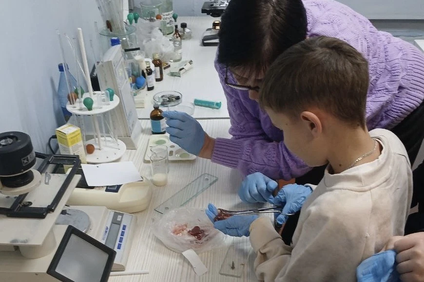 ▫️Так, на днях Тайшетская станция по борьбе с болезнями животных провела акцию «В гостях у Айболита» для учеников школы №10 Бирюсинска. Ветеринары рассказали детям о своей профессии, показали кабинеты и оборудование. Ребята посмотрели, как ведется первичный прием домашних животных и попробовали исследовать мясо на трихинеллез.
