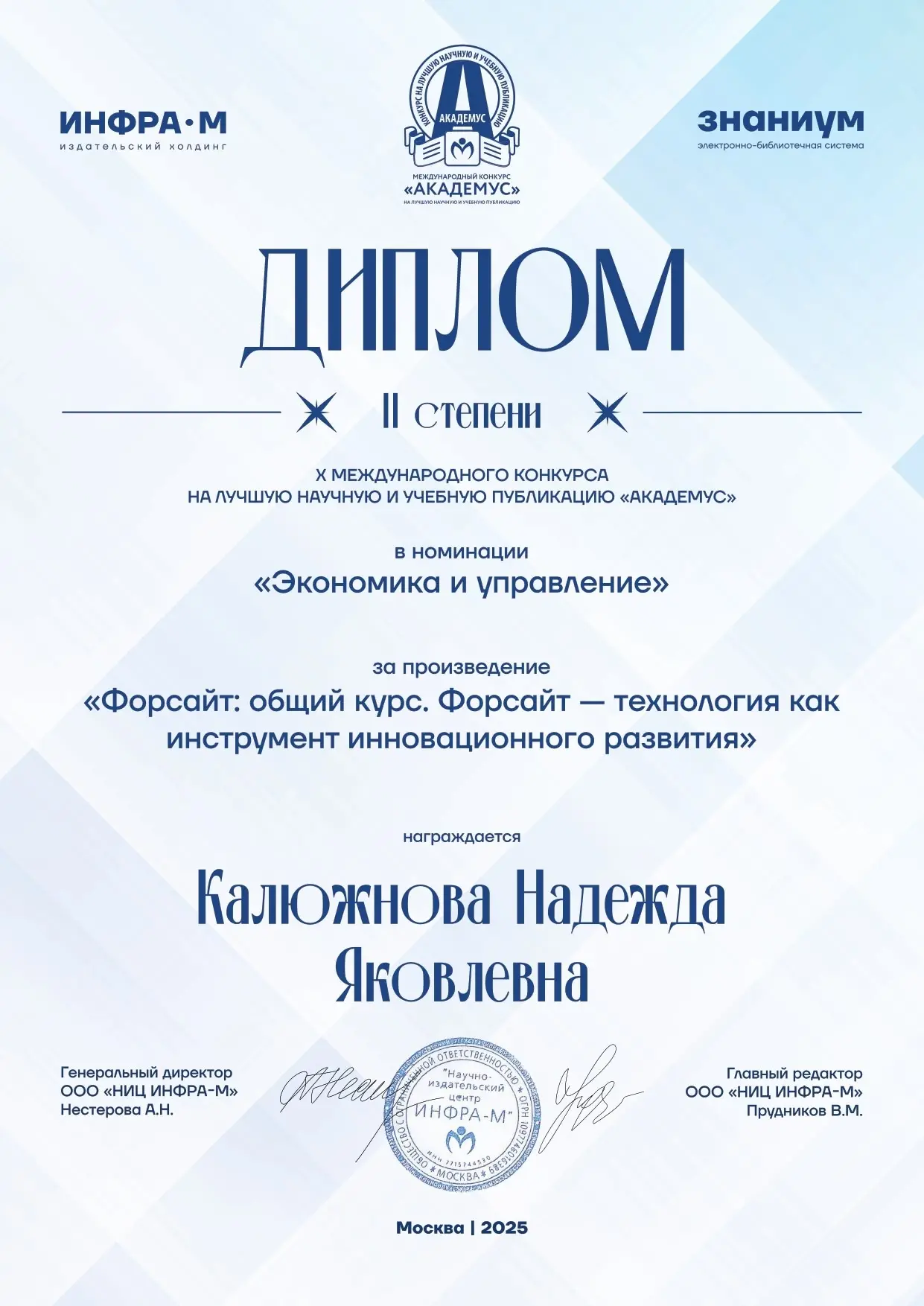 ✍️ Надежда Калюжнова – автор книги «Форсайт: общий курс. Форсайт-технология как инструмент инновационного развития».
