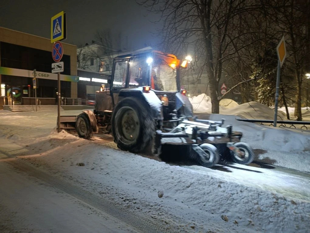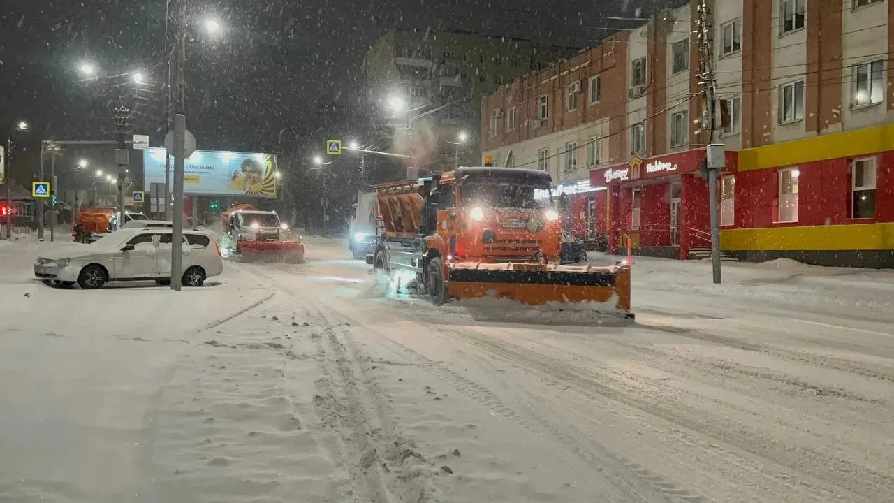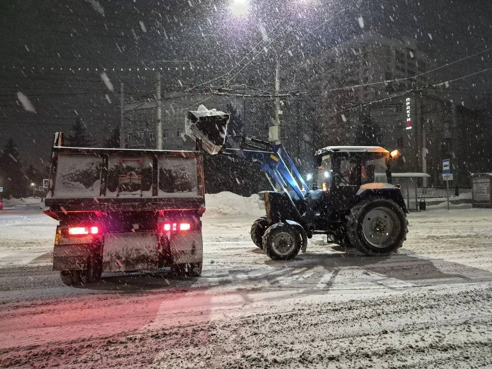 ❄️ В ночную смену службы по благоустройству продолжили уборку снега на улицах города