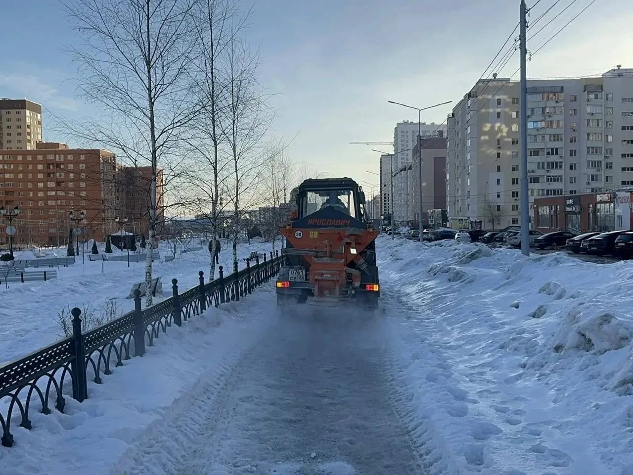 Коммунальные службы города проводят комплексные работы по уборке наледи и противогололедной обработке территорий