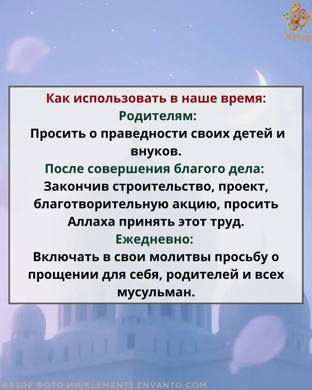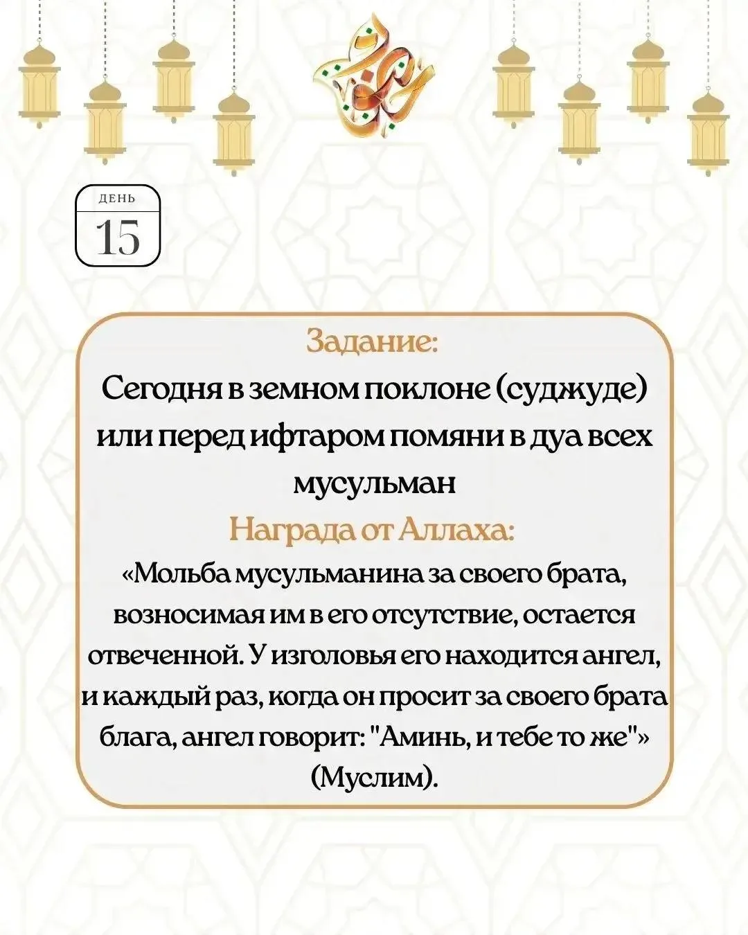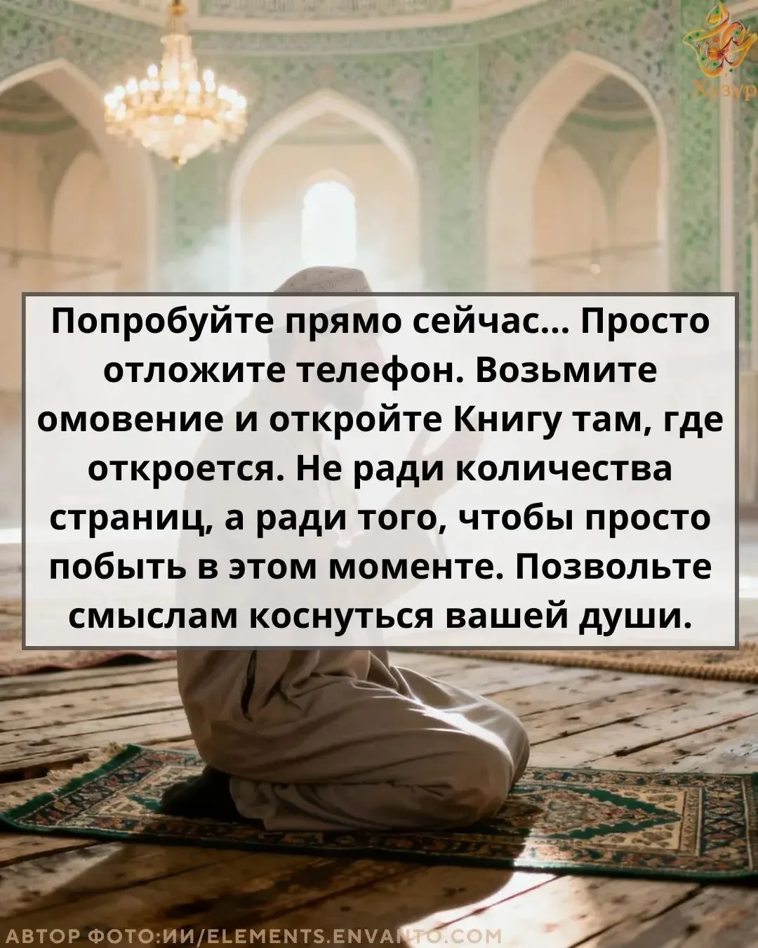 Каждый день на протяжении всего месяца мы будем присылать вам маленькие задания. Они не отнимут много времени, но подарят главное — состояние Хузур. Ту самую тишину в сердце, свет в душе и опору в вере, о которой мы так часто мечтаем.