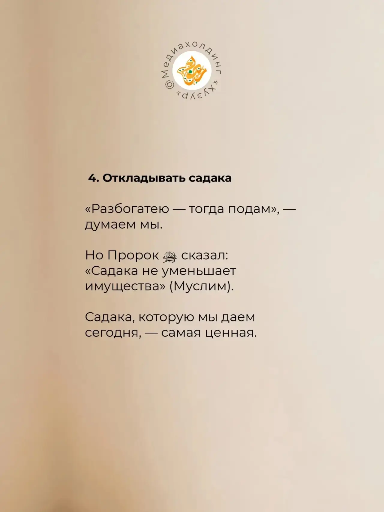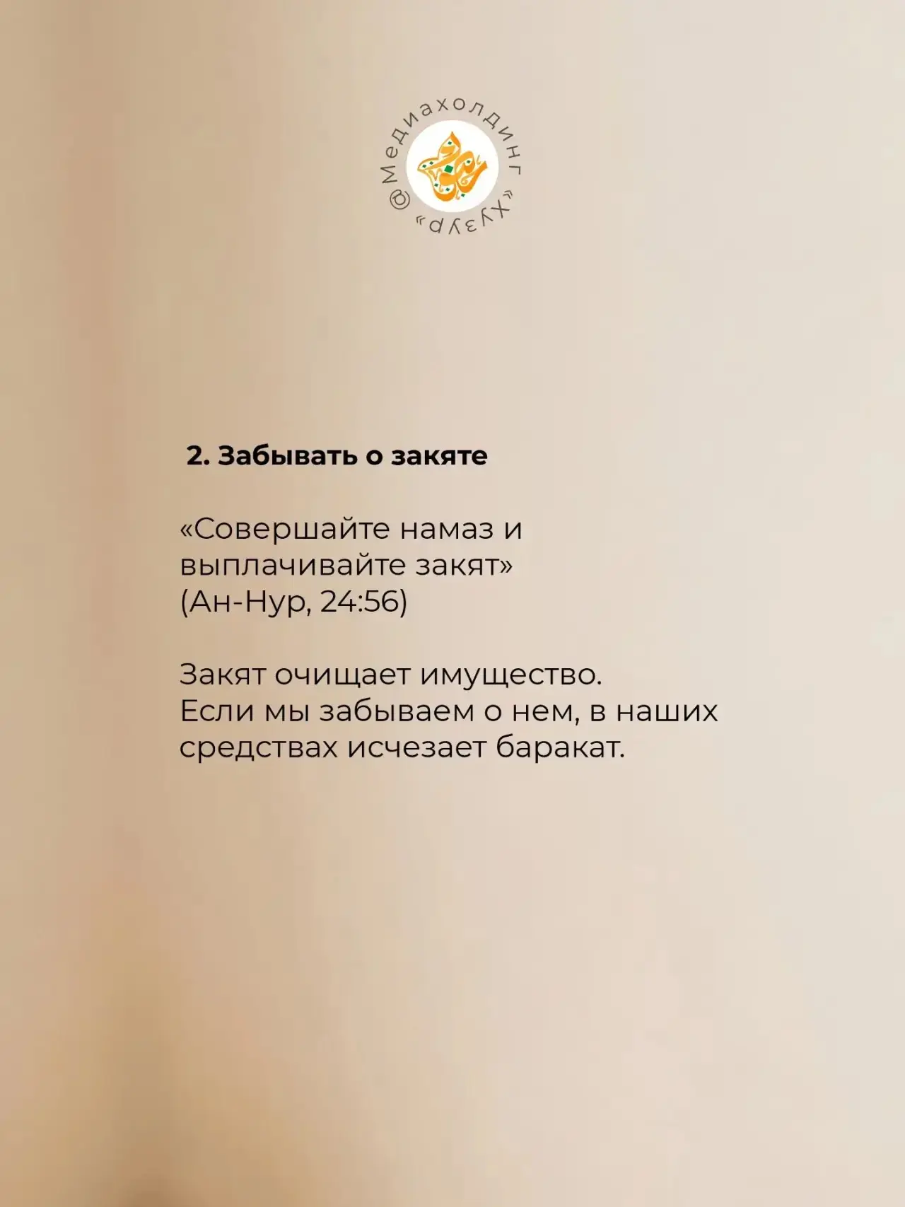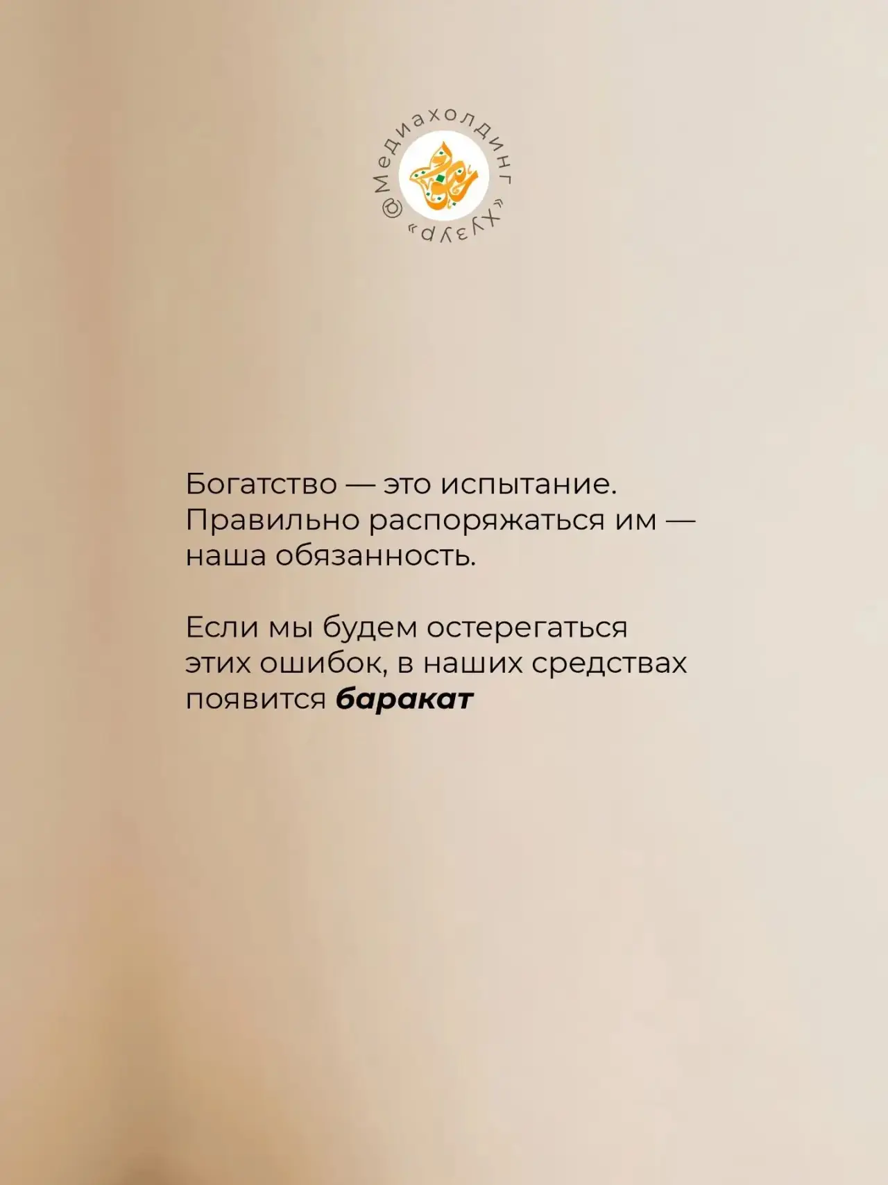 «Богатство — такое же испытание, как и бедность. Но если бедность проверяет на терпение, то богатство проверяет на щедрость. А что будет с тем, кто не прошёл этот тест и не платил закят?