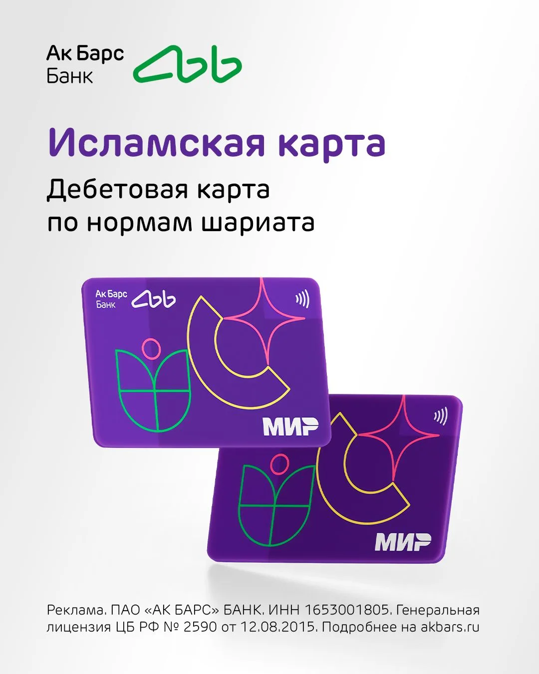 Реклама. ПАО «АК БАРС» БАНК. ИНН 1653001805. Генеральная лицензия ЦБ РФ № 2590 от 12.08.2015. ERID: 2SDnjeQnfcn