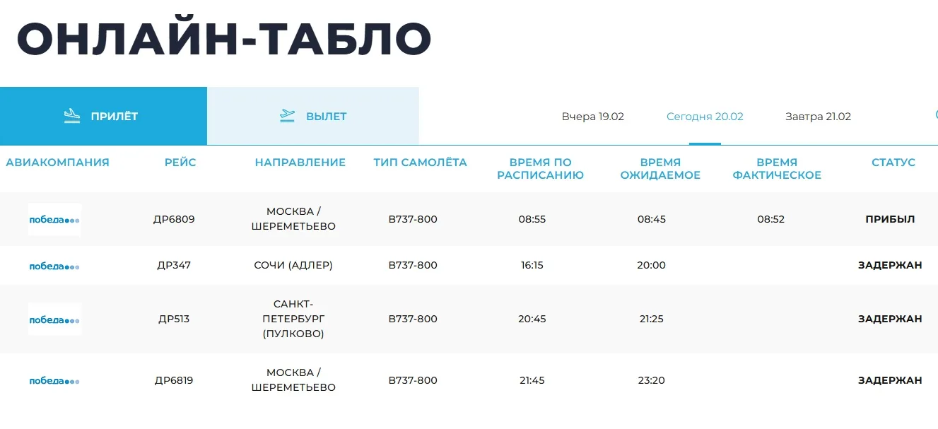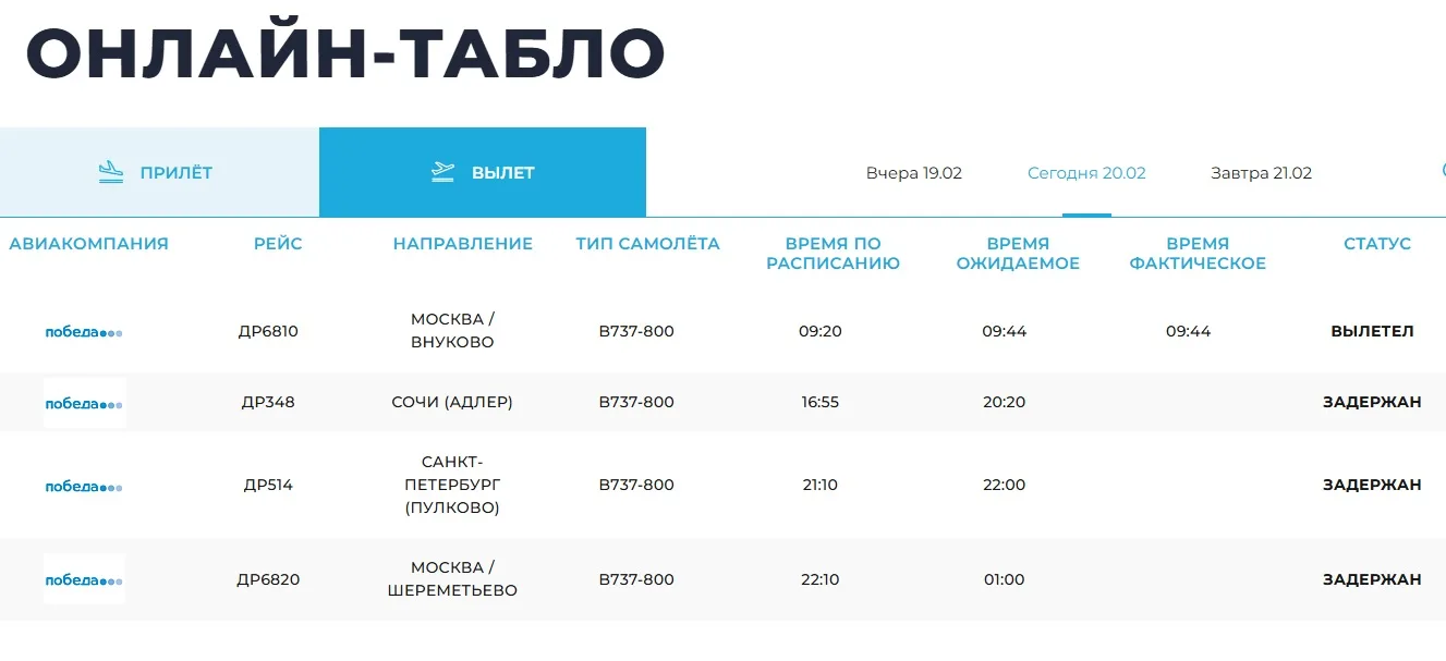 Авиарейсы в «Победилово» сегодня задерживаются на прилёт и вылет.