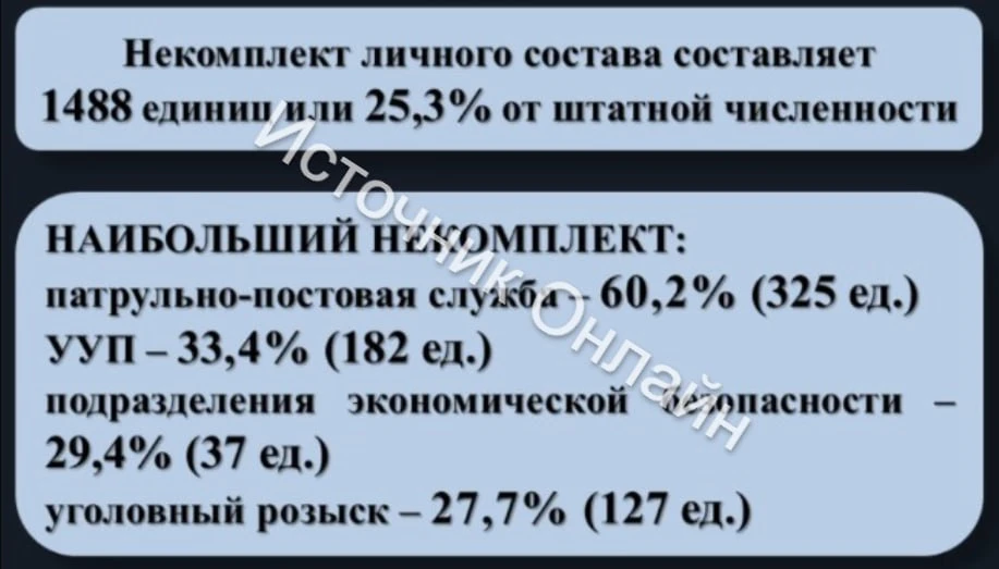 – Наиболее сложная ситуация сложилась в ППС, где некомплект личного состава более 60 процентов, каждый третий сотрудник отсутствует в службе участковых уполномоченных полиции, – сказал Селянин.