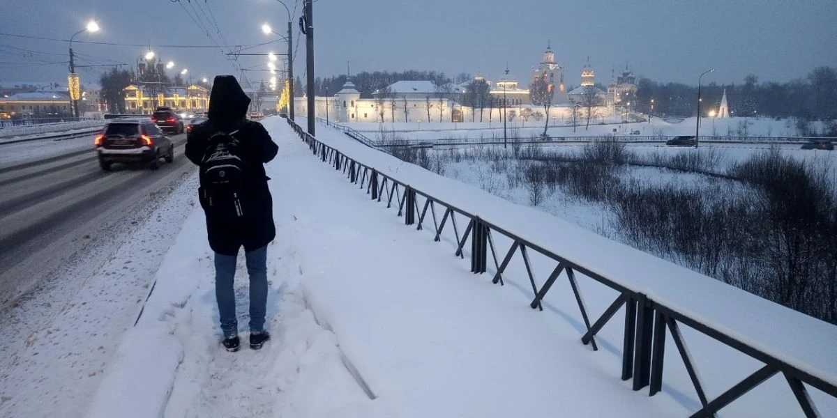 Впервые ступаю на ярославскую землю, сойдя с вагона поезда «Владивосток-Москва». Пятница, 13-ое. На часах 7:00. От вокзала Ярославль-Московский шагаю по Московскому же проспекту, который к утру неплохо вычищен, а вот тротуар вдоль него – пока нет. Такой снегоуборочный контраст. Потому приходится шагать несколько километров по узкой протоптанной тропке, след в след. В том числе и по мосту, ведущему к красиво подсвеченному Ярославскому кремлю.