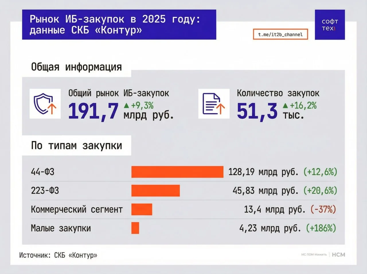- Общий рынок ИБ-закупок вырос на 9,3% и достиг 191,7 млрд руб.