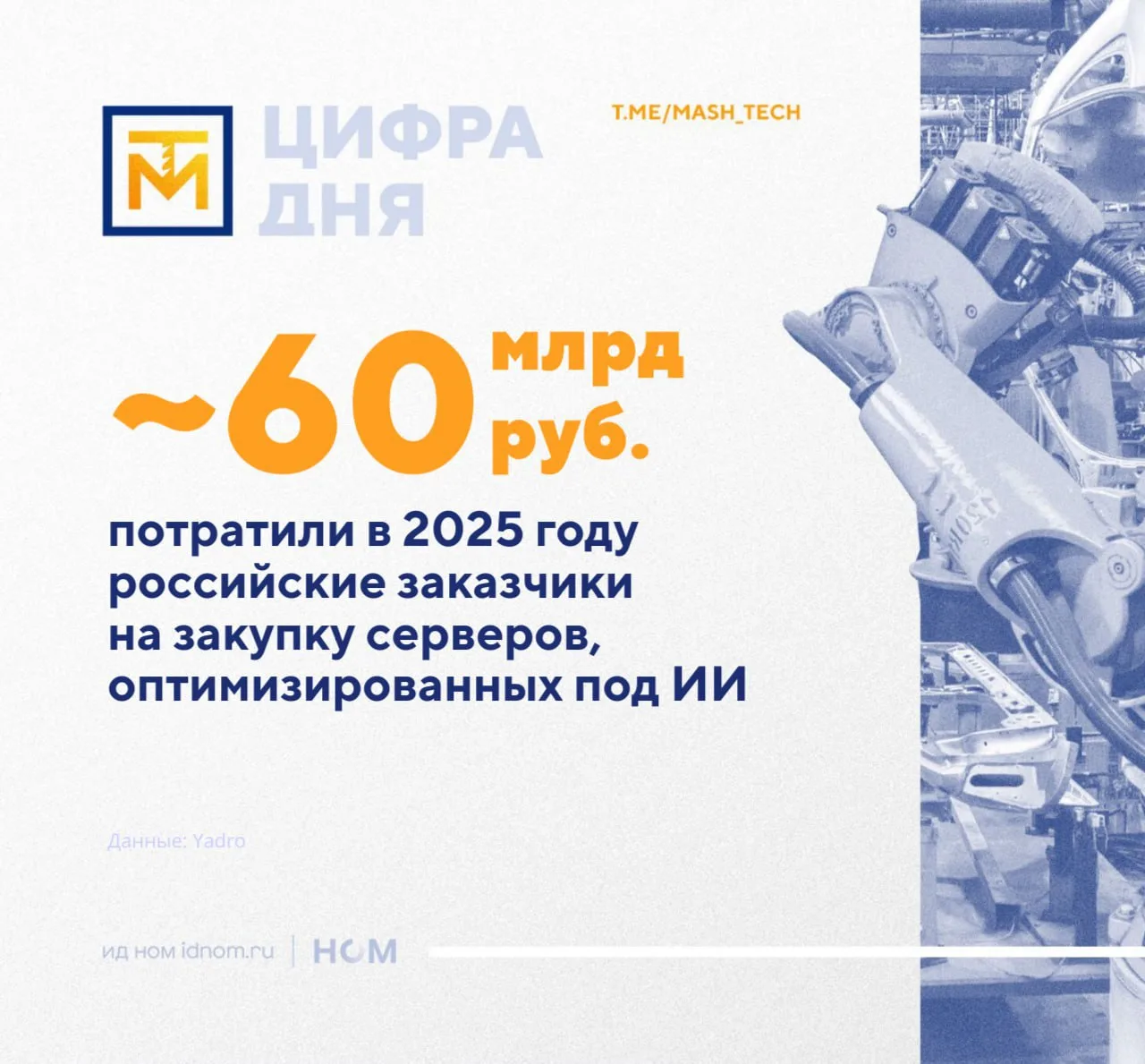 Российские заказчики за год потратили около 60 млрд рублей на закупку серверов, оптимизированных под ИИ. И как рассказал коммерческий директор Yadro Александр Бакулин, в эту сумму входит покупка серверов, а аренда вычислительных мощностей, обслуживание и модернизация не учитываются.