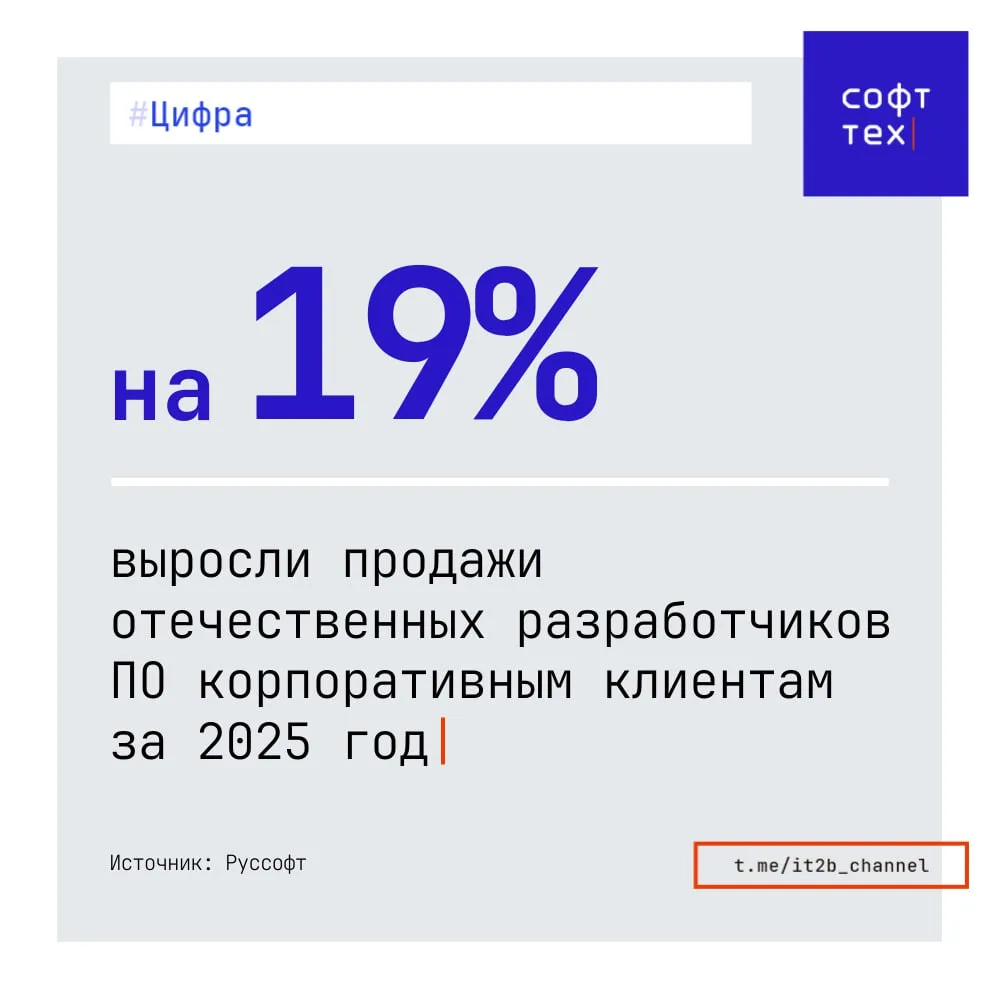 Продажи отечественных разработчиков ПО корпоративным клиентам за 2025 год составили 2,3 трлн руб. Это на 19% больше, чем годом ранее, — об этом заявила ассоциация «Руссофт».