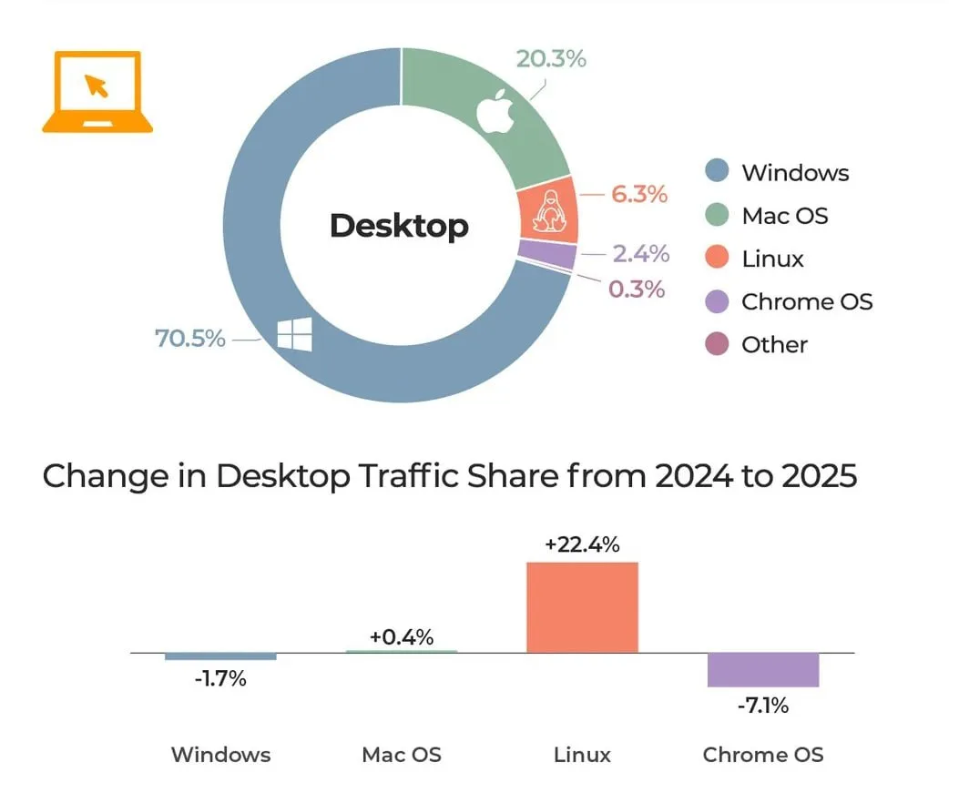 10:51 12-12-2025 Pornhub поделился занятной статистикой: за год доля Linux-юзеров на сайте выросла на 22,4% и достигла 6,3% 😂