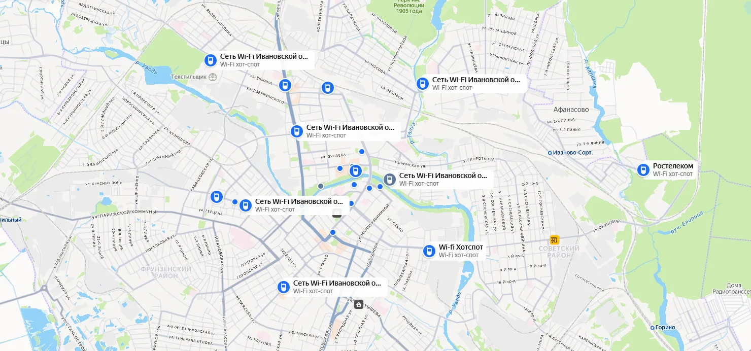 📌В сервисе Яндекс Карты теперь можно воспользоваться картой общественных Wi-Fi точек в городе Иваново