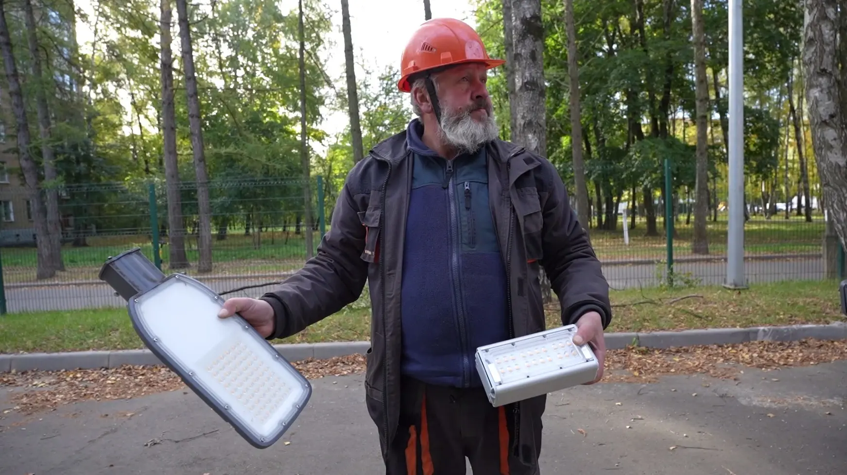 Бригада электриков поменяла старые неисправные светильники на новые светодиодные.