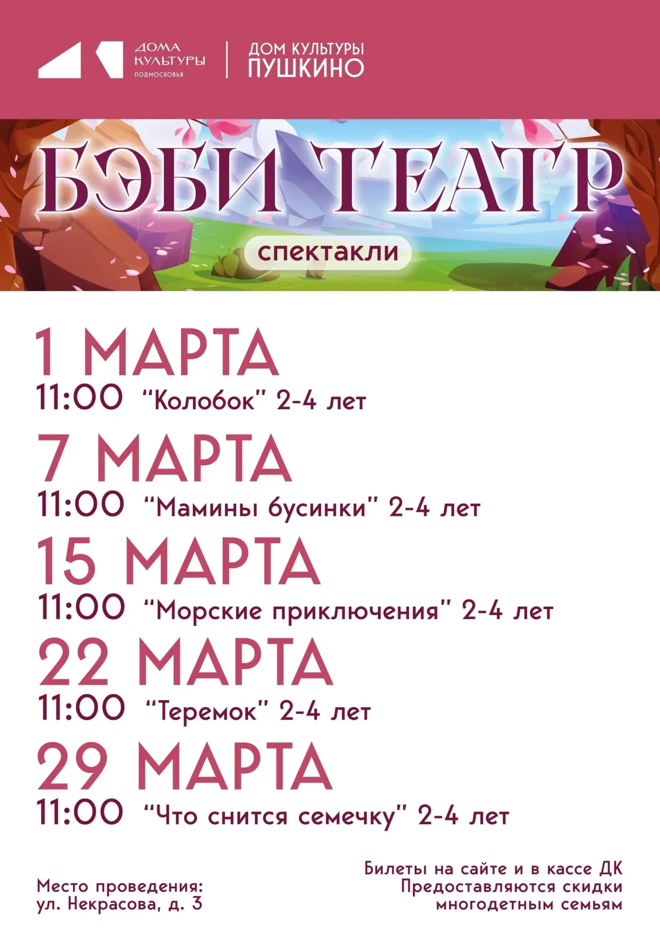 📍 Адрес: ДК «Пушкино», ул. Некрасова, д.3