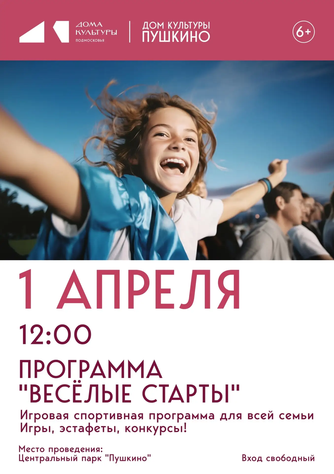 Ждём всех на игровую программу «Весёлые старты» 1 апреля в Центральном парке Культуры и Отдыха г. Пушкино 🏃🏻♂️➡️ 🚴🏼♂️