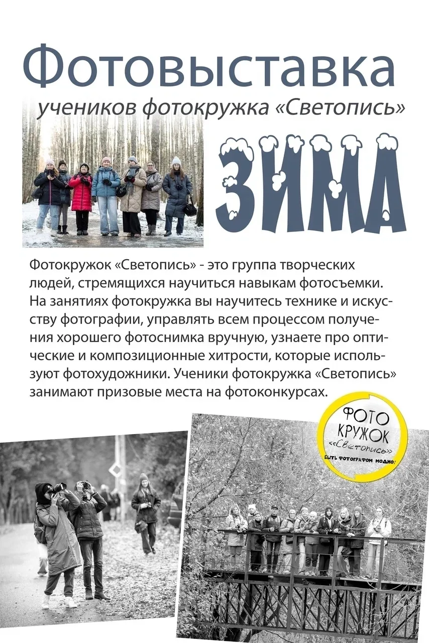 28 января в Доме культуры «Пушкино» открылась фотовыставка учеников фотокружка «Светопись» - «Зима».