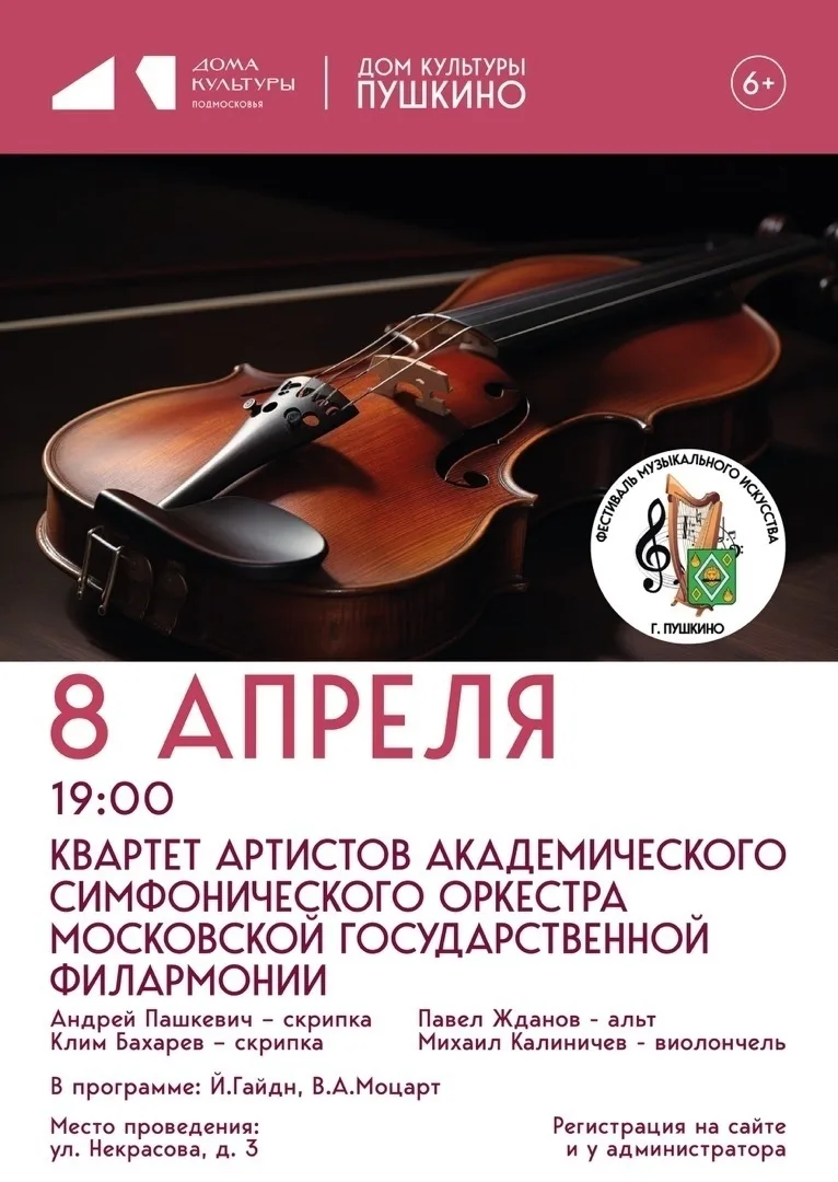 8 апреля в 19:00 состоится концерт струнного квартета, в состав которого входят ведущие музыканты Академического симфонического оркестра Московской государственной филармонии. В программе вечера — камерные произведения классиков: Йозефа Гайдна и Вольфганга Амадея Моцарта.