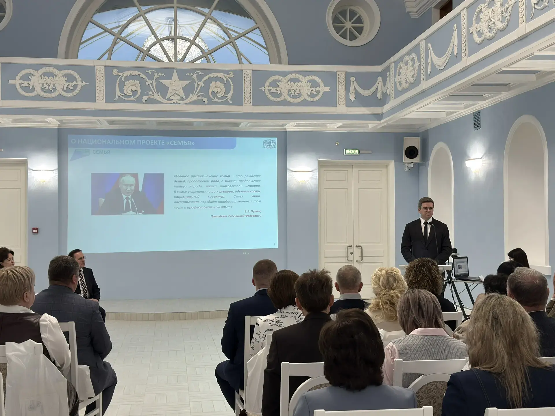 В своем выступлении директор департамента образования и науки Ивановской области рассказал, что нацпроект рассчитан до 2030 года, а его ключевая цель — увеличить число семей с детьми. Для этого необходимо обеспечить устойчивый рост рождаемости, увеличить число многодетных семей и провести модернизацию инфраструктуры детских садов, включая их капитальный ремонт.