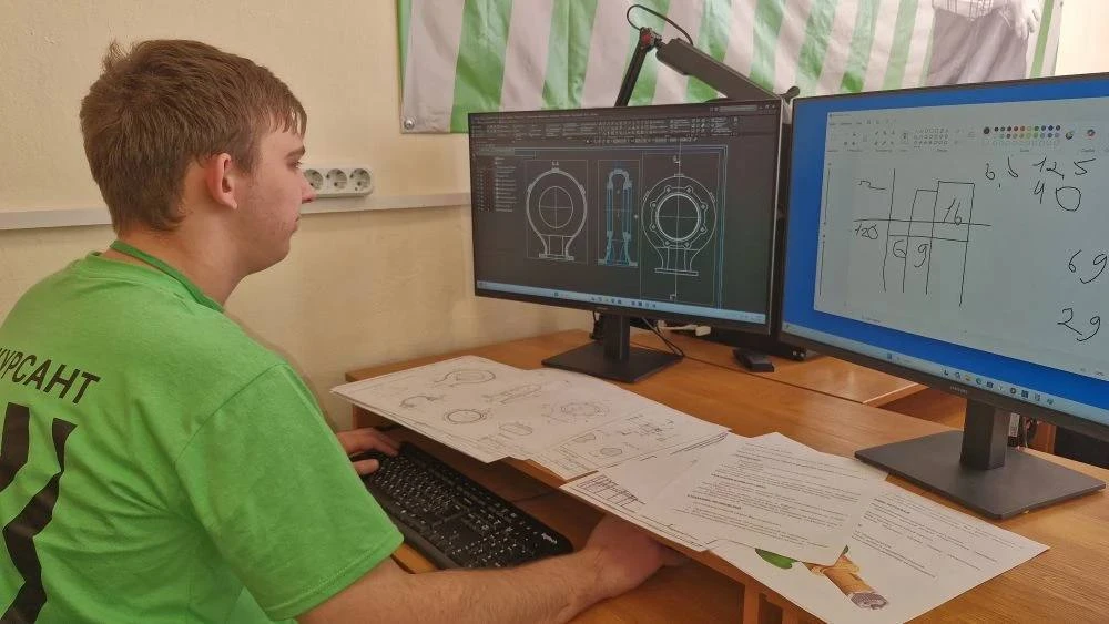 ▶️ В Вичугском многопрофильном колледже конкурсанты работали по двум модулям: в Модуле А — создание электронных моделей и оформление рабочих чертежей, в Модуле Г — разработка корпуса воздушного фильтра и его печать на 3D‑принтере, а также подготовка сборочного файла и чертежа формата А3