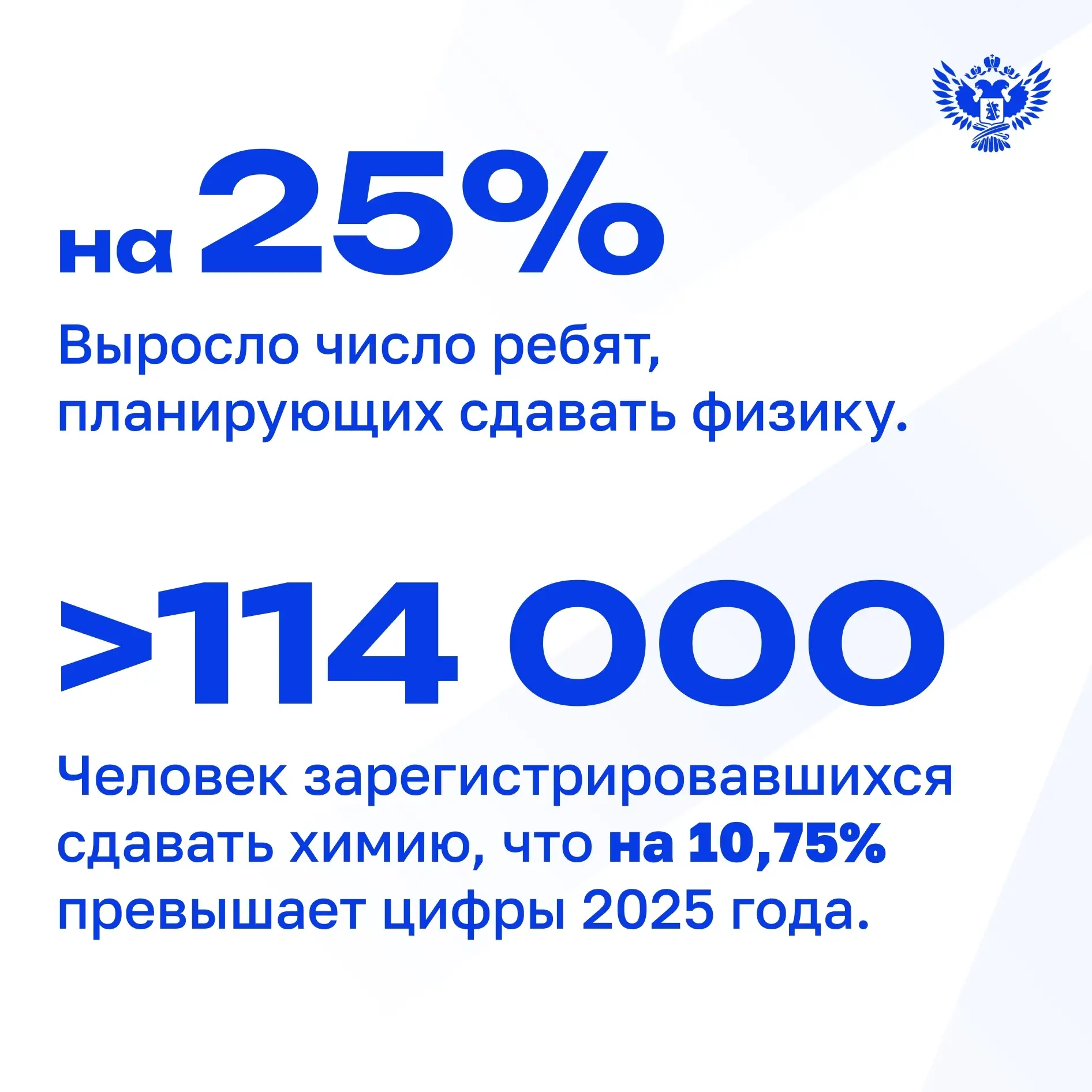 «Сегодня мы с гордостью отмечаем, что интерес наших школьников к естественно-научным специальностям приобретает характер устойчивого тренда. Это демонстрирует и статистика регистрации на ЕГЭ-2026. Рост популярности физики, информатики и профильной математики — это результат системной работы по укреплению единого образовательного пространства России. Мы продолжаем реализацию утвержденного Правительством плана мероприятий по развитию математического и естественно-научного образования до 2030 года. Мы понимаем, что выбор сегодняшних абитуриентов — это инвестиция в кадры будущего», — отметил министр просвещения РФ Сергей Кравцов.