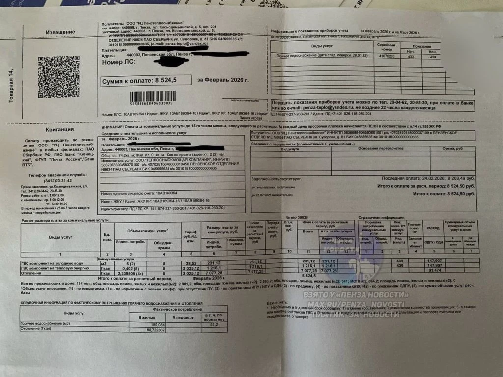 Жительница Пензы, которая живёт на улице Токарной, 14, поделилась суммой из своей квитанции.