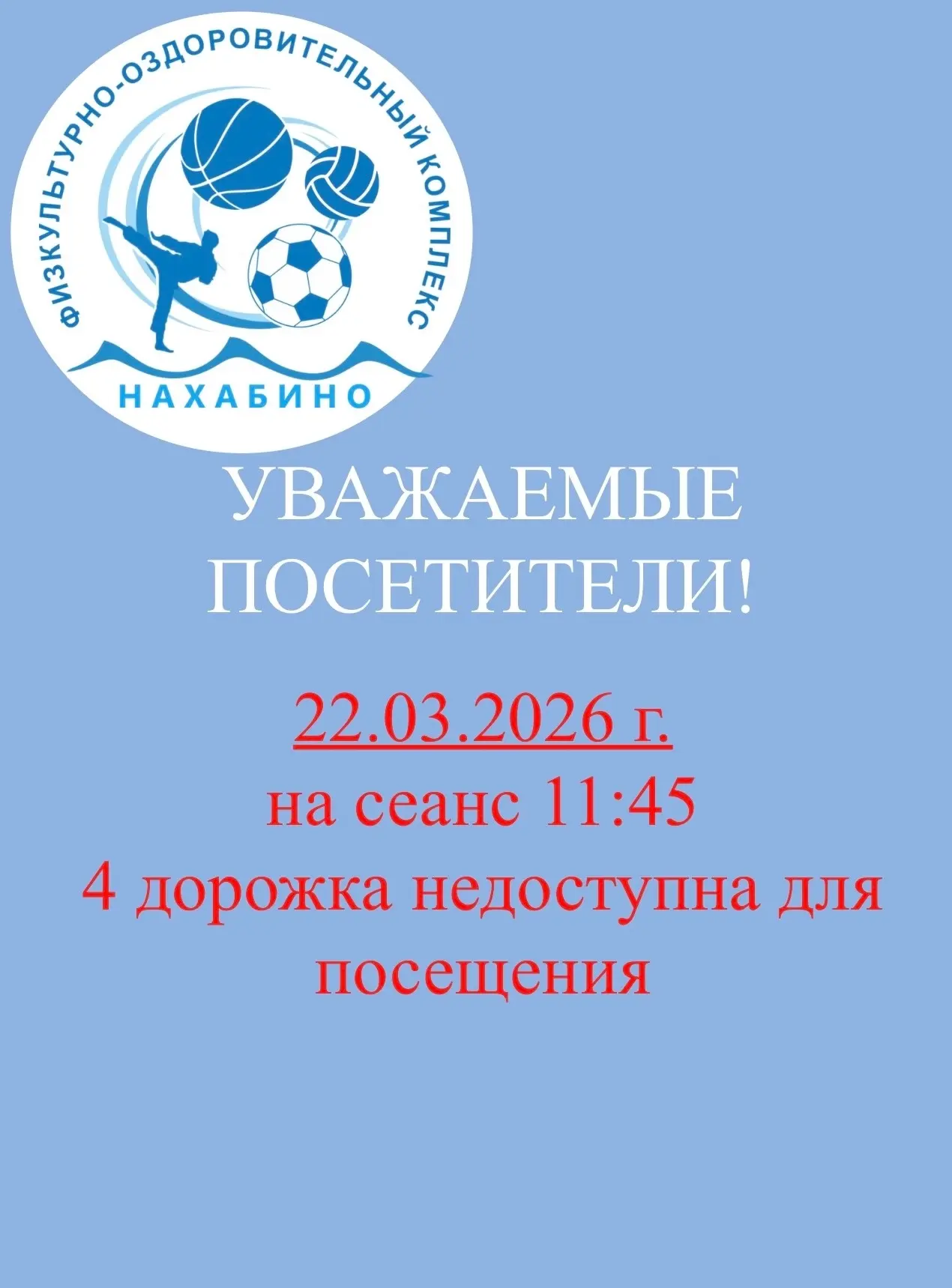 🏊 4 и 7 марта отменены тренировки по плаванию у инструктора Веренцовой Т.Н.