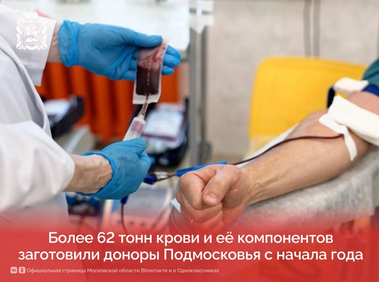 Более 62 тонн крови и её компонентов заготовили доноры Подмосковья с начала года.