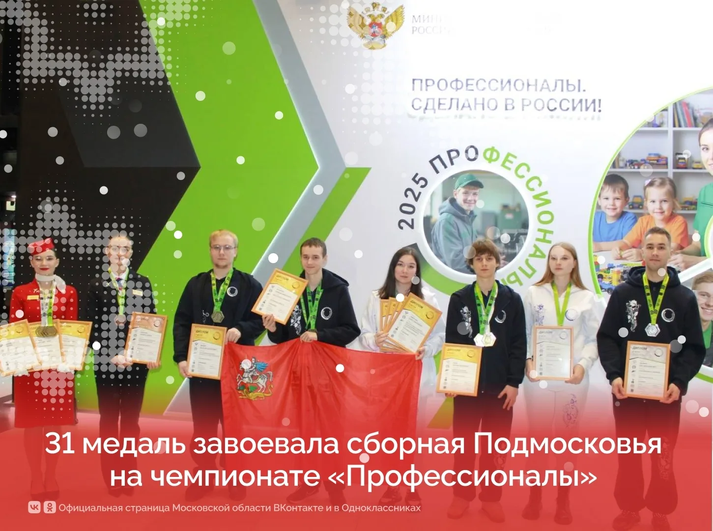 Поздравляем финалистов и желаем успехов, каждый из вас – профессионал!31 медаль завоевала сборная Подмосковья на чемпионате «Профессионалы».