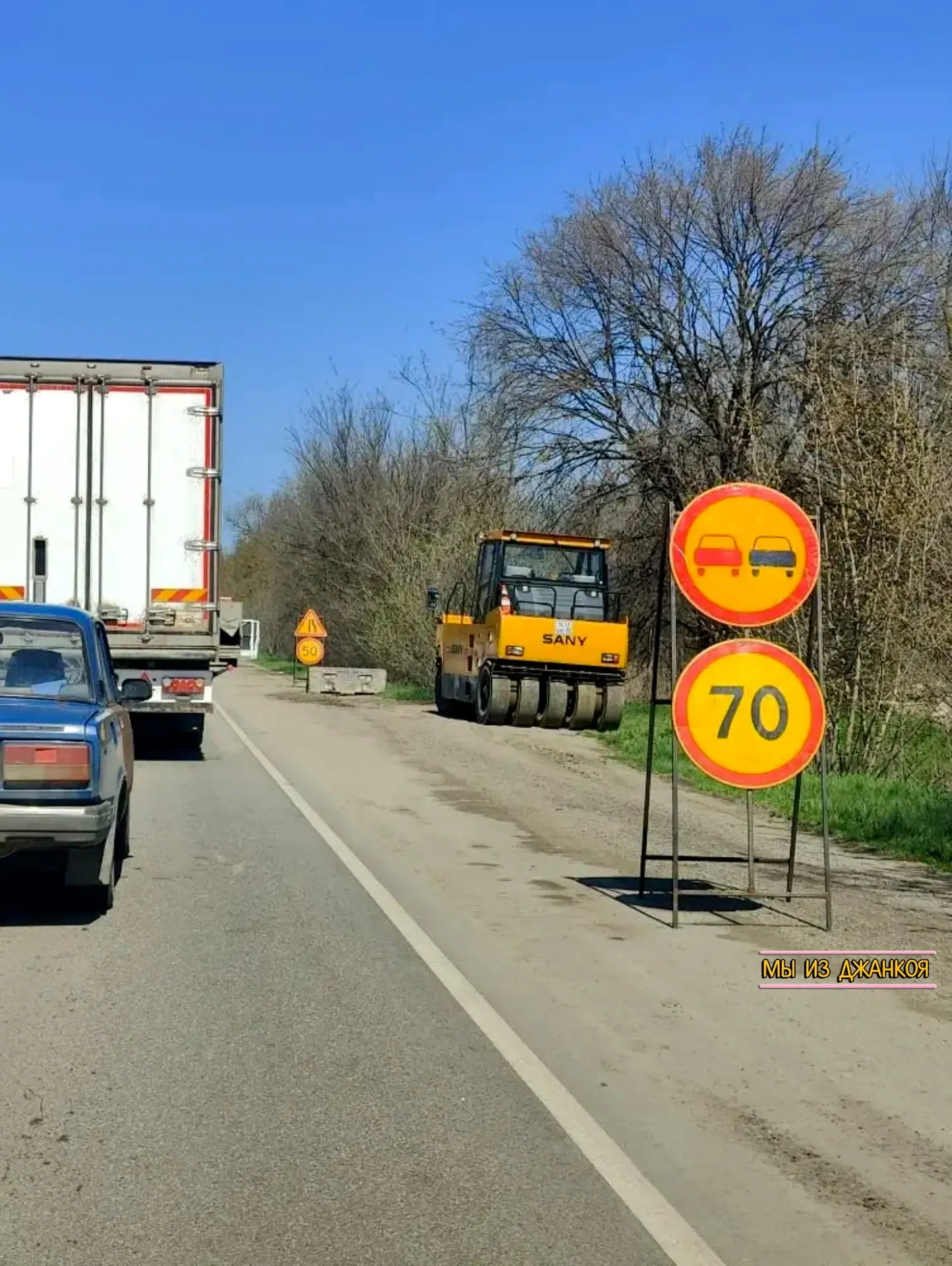 🚧В сторону Чонгара, сразу за посёлком Изумрудное, сняли слой асфальта и начали дорожные работы. На участке организовано реверсивное движение.