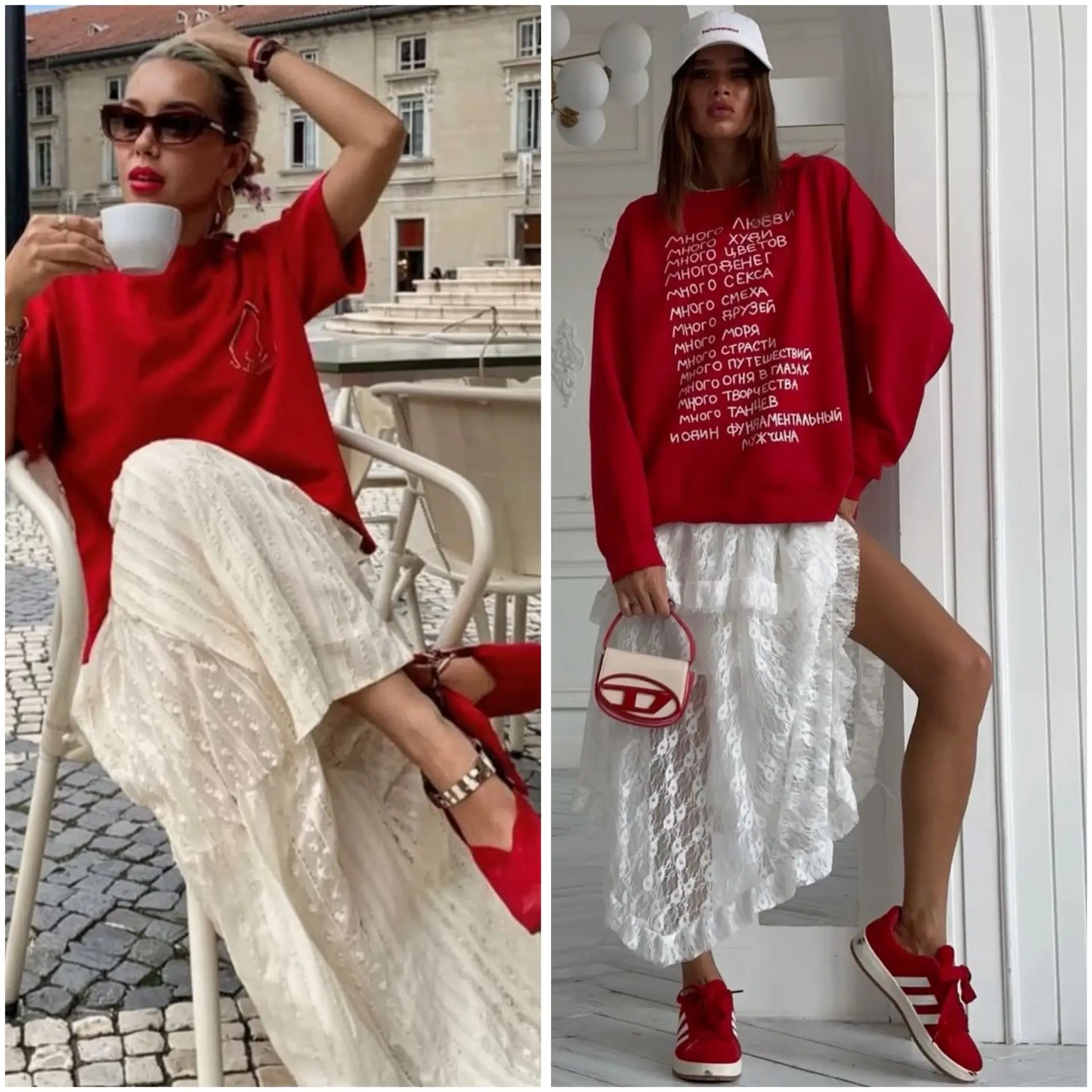 За полтора года декрета у меня скопилось большое количество спортивных костюмов, худи, свитшотов. Хочется поменять вектор в сторону женственных комплектов.