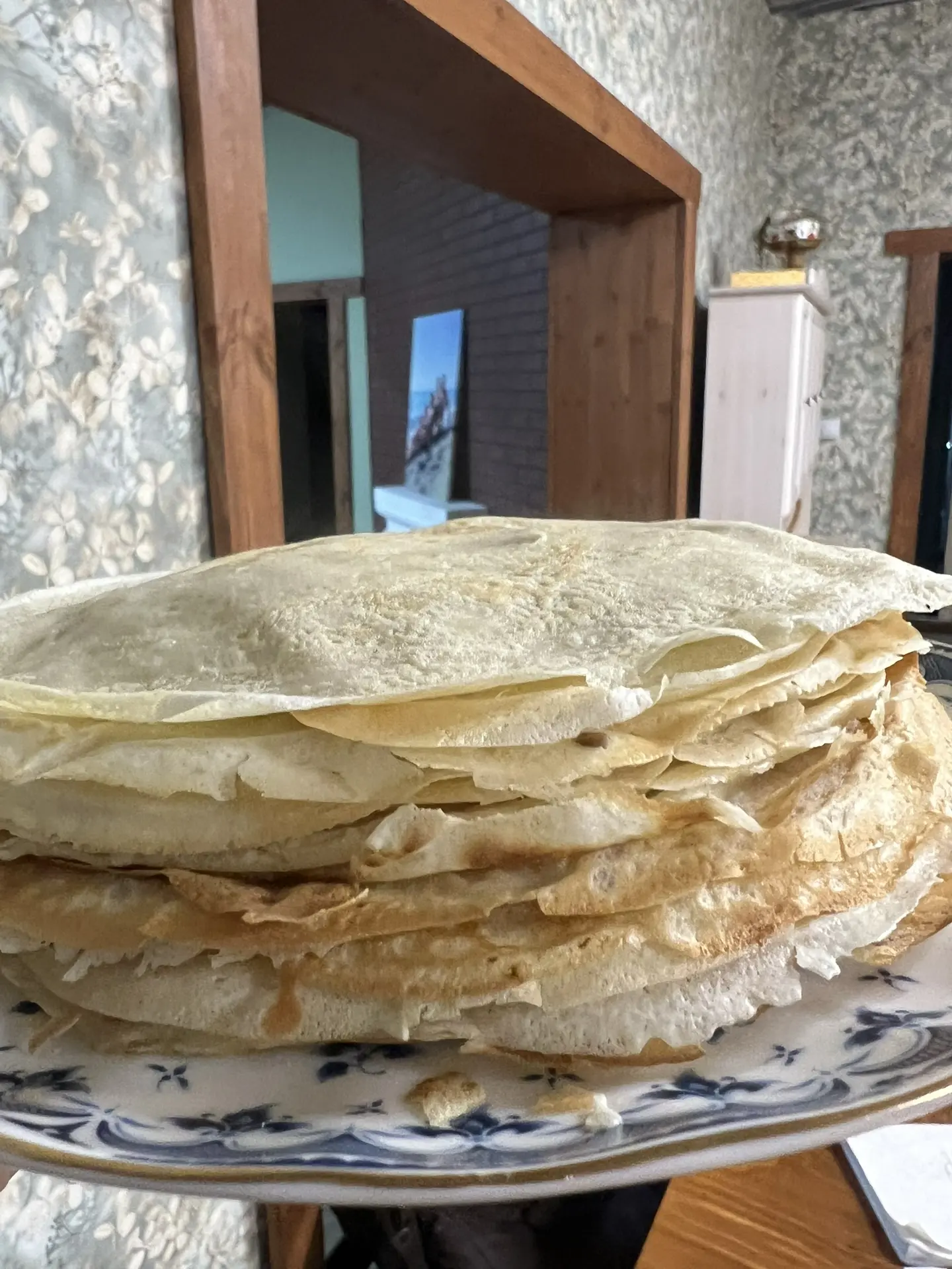 Я все , почти труп . Так долго не могу у плиты стоять не отходя . Час жарила блины , съели половину . половину спрятала 😂😂 иначе заворачивать начинку будет некуда