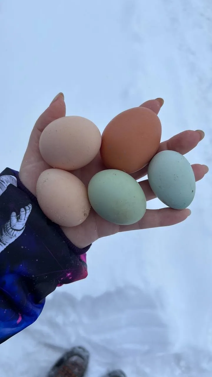 На фото яйца как раз от доминантой . Посмотрите их размеры 🔥 я подумаю , может и их закажу выведу . Пора менять поголовье кур (я держу несушек 4-5 лет ) . Чем старше курица тем крупнее яйцо , но яйценоскось уже падает.