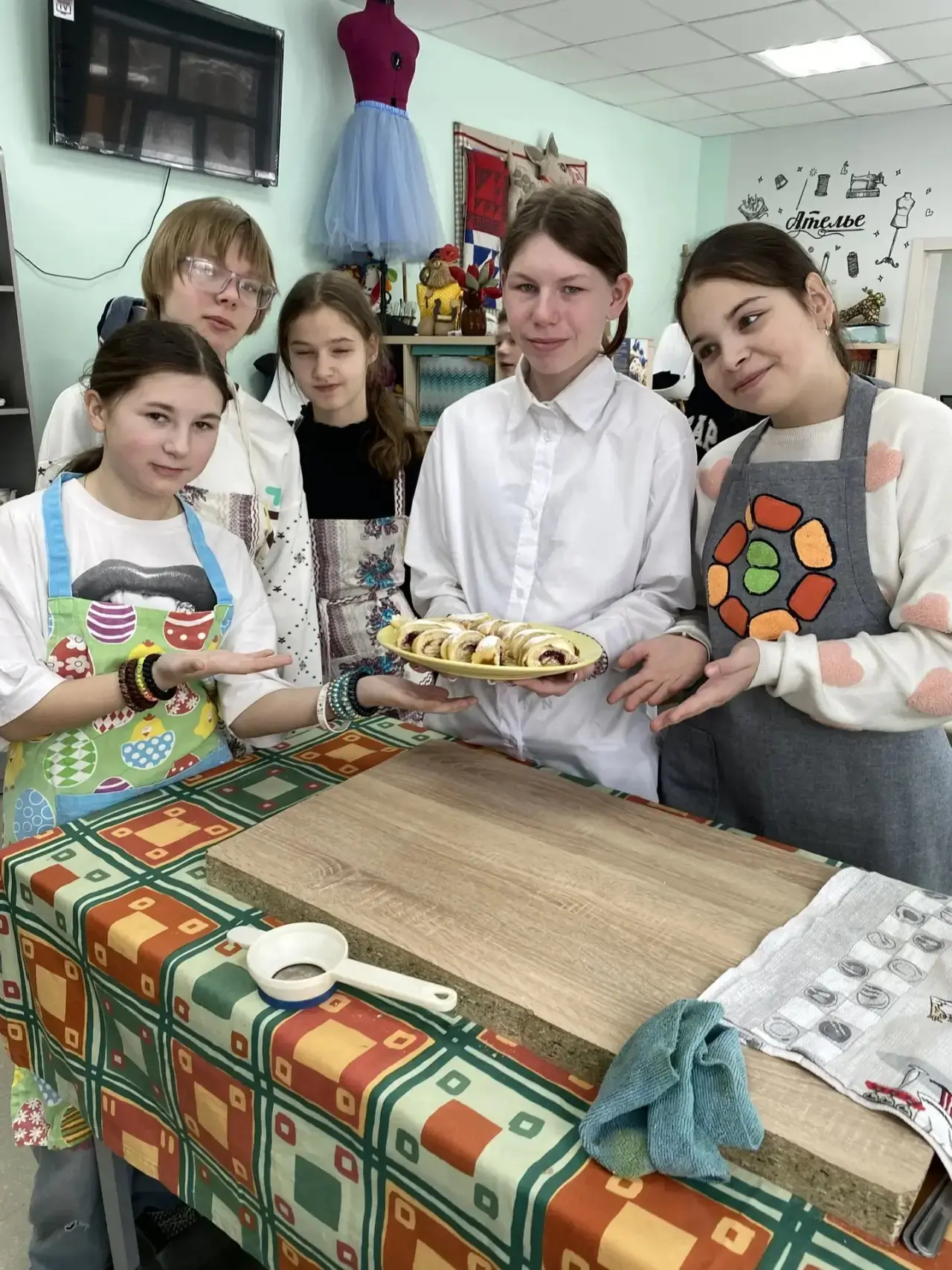 🌟Ученики 7в класса вместе с классным руководителем Натальей Геннадьевной Кузнецовой испекли блинный рулет, с творожным кремом и джемом!