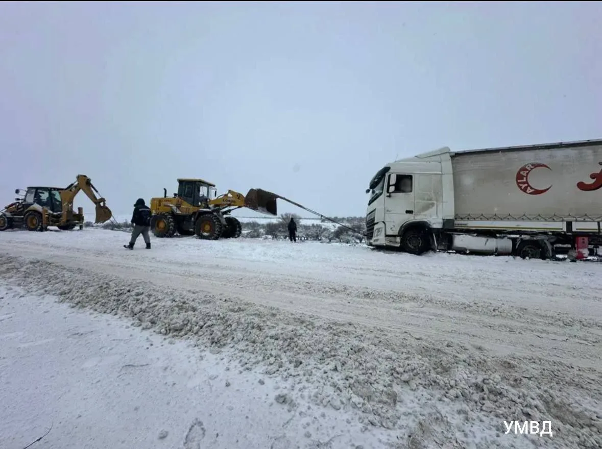 🚨Астраханские гаишники во время снегопада вытаскивали застрявшие фуры и легковушки из кюветов.
