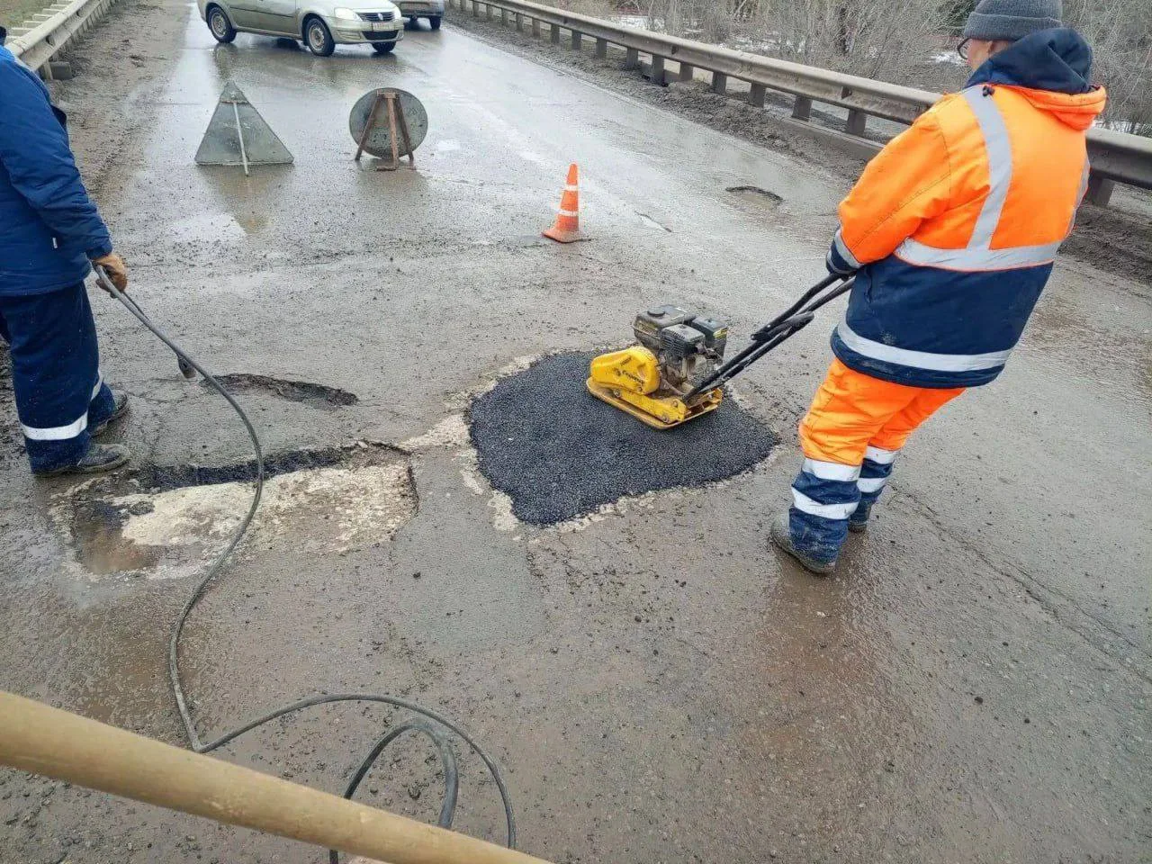 В настоящее время ремонтные работы проводятся на мосту через дорогу. В ближайшее время бригады переместятся на улицу Черно-Иванова.
