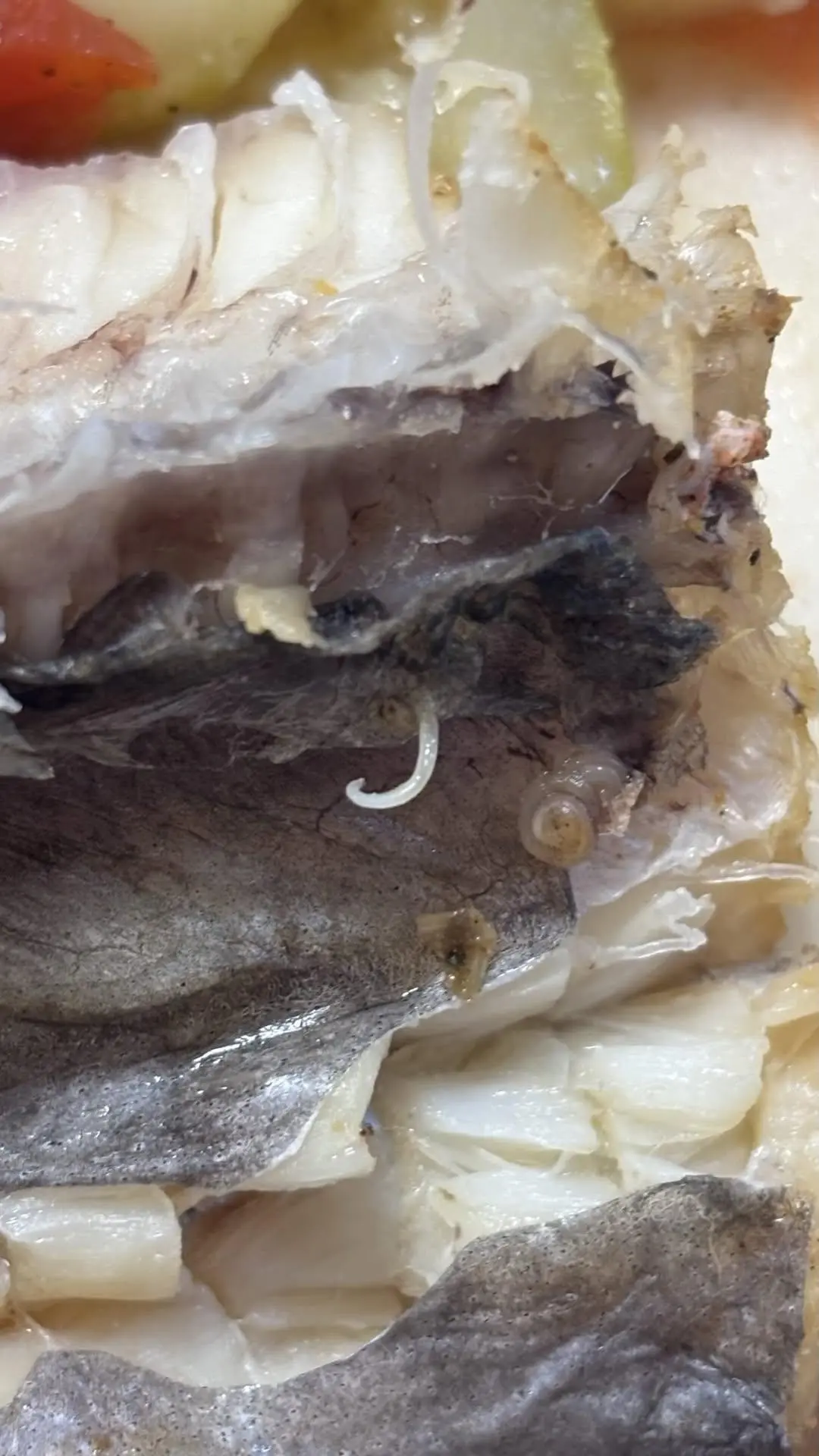 Уважаемые знатоки скажите, пожалуйста, что это или кто это?😳 Минтай запекла в духовке. Купила замороженный. Я конечно сразу выкинула.