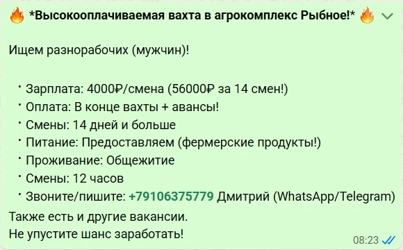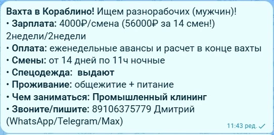 💥ОБЪЕКТ «ТЕХНОЦВЕТ» приглашает разнорабочих мужчин (20+) с ЕЖЕДНЕВНОЙ ОПЛАТОЙ