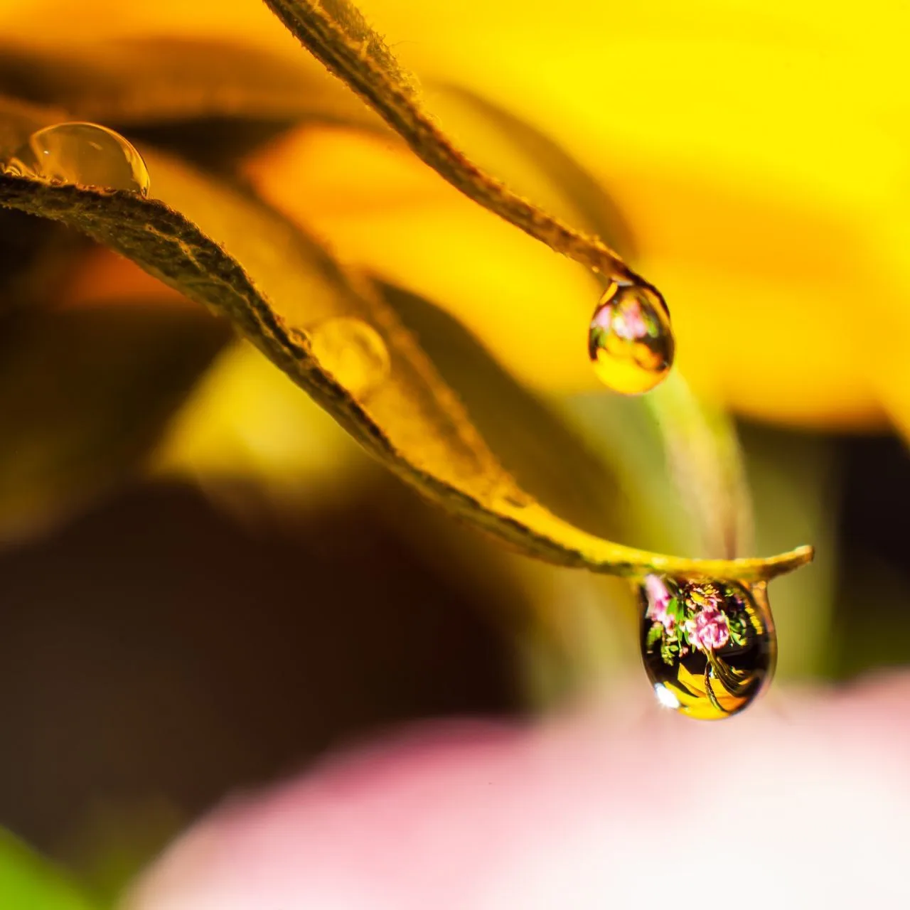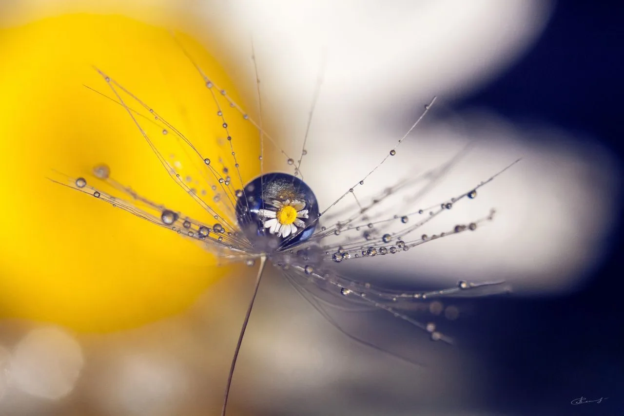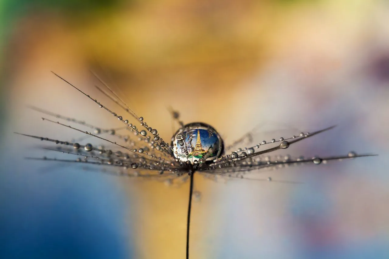 3. Объектом, на котором будет располагаться капля, может быть как лепесток, перо, листик растения (например, как на фото ниже), так и другая поверхность, где капля будет держать форму.