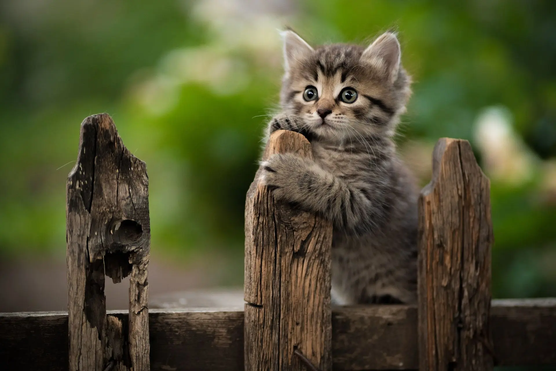 Для своих моделей, котят маленьких, я сделал два заборчика деревянных. Один состаренный, другой более современный. Они удобны тем, что имеют высоту сантиметров 50. Котёнок вообще смело на них забирается, запрыгивает, спрыгивает, играется на нём. Сзади заборчика, с обратной стороны, находится небольшая подставочка, чтобы ему удобно было ходить по забору. На фотографии её не видно. Естественно, и кадрирую я так фотографии, чтобы не было видно всего забора, и тогда, конечно, создаётся ощущение, что он ходит по высокому большому забору, к которому мы привыкли в жизни.