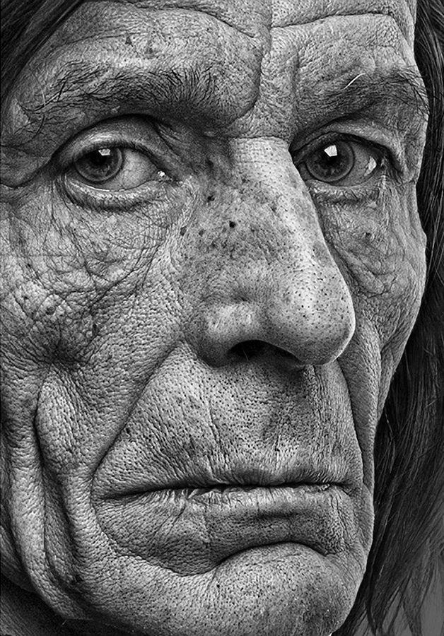 Размойте задний фон, часть одежды, уши и нос, оставьте резкими только глаза и губы — вы получите объемную фотографию. Закрытая диафрагма — меньший объем, открытая — больший."