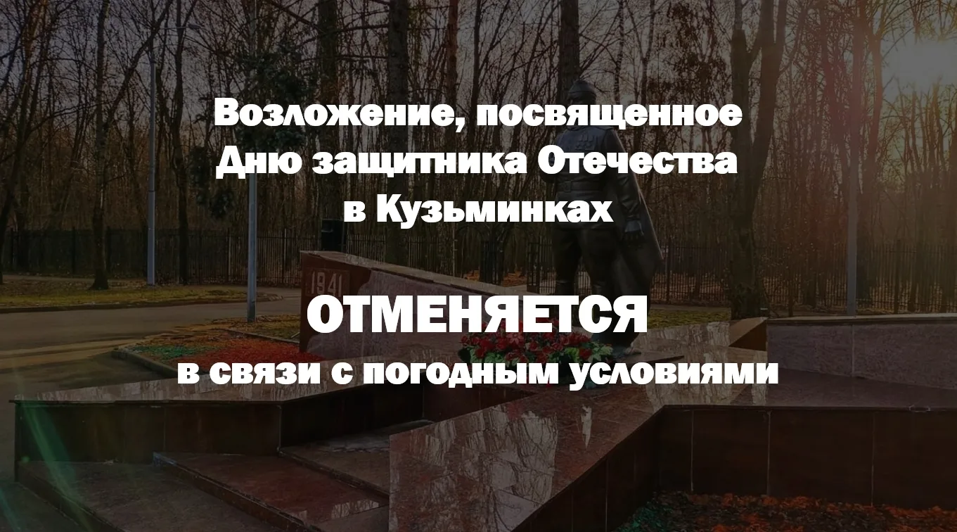 Мы обязательно почтим память защитников Отечества и проведем церемонию возложения, как только позволят погодные условия. О новой дате и времени мы сообщим дополнительно.