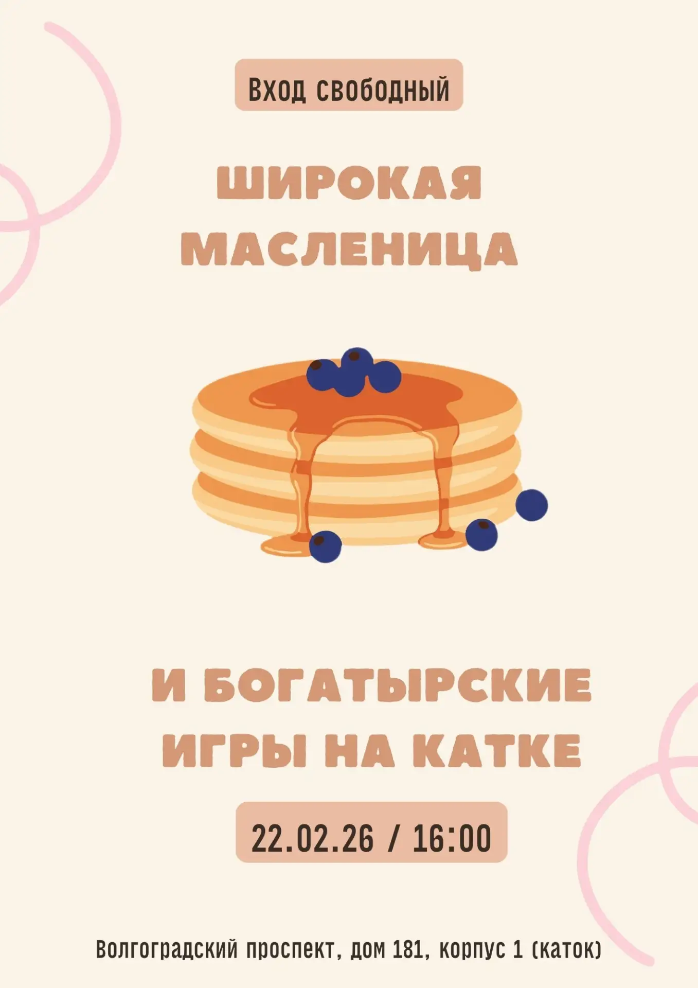 Гостей праздника ждёт насыщенная интерактивная программа, объединившая народные традиции и спортивный дух. Для участников подготовлены весёлые народные забавы и развлечения, адаптированные для проведения на льду. Центральным событием станут богатырские игры, в которых все желающие смогут проявить силу и ловкость. Также в программе заявлены массовые хороводы, создающие атмосферу традиционного масленичного гулянья. ❤