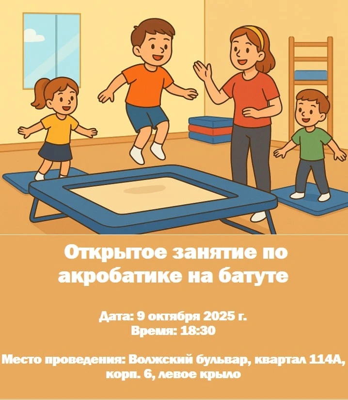 Спортивно-досуговый центр «БАРС» приглашает юных спортсменов от 3 лет на бесплатное открытое занятие по акробатике на батуте.