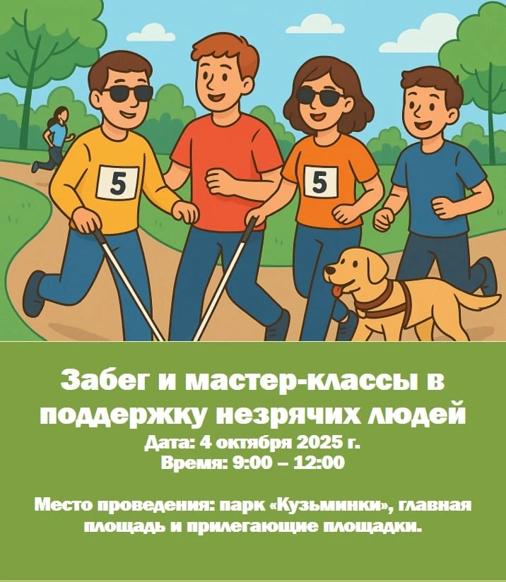 Мы приглашаем вас пробежать 5 км плечом к плечу с незрячими спортсменами. Это не соревнование на скорость, а забег в поддержку, где ваше участие — это важный сигнал о том, что мы все одна команда.