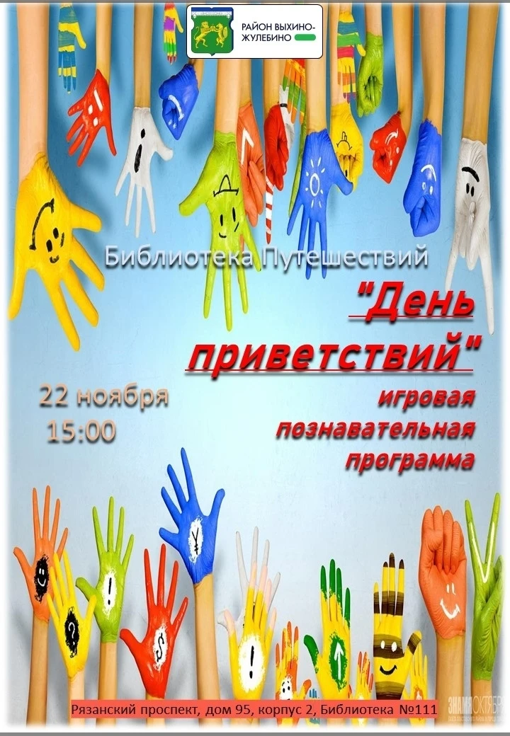 Библиотека №111 проведет увлекательную, игровую и познавательную программу в честь празднования неофициального праздника "День приветствий"!