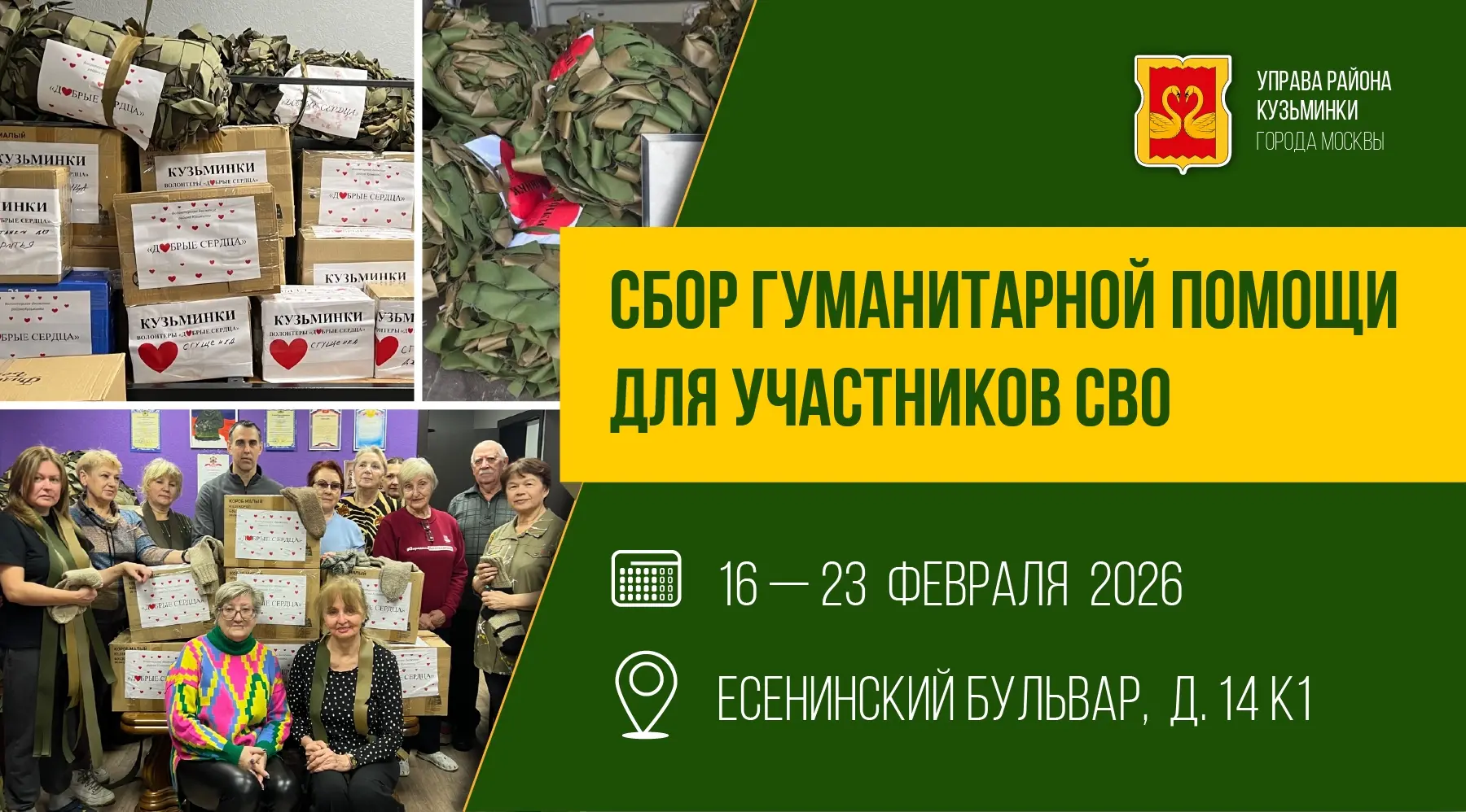 Жителей Кузьминок приглашают присоединиться к сбору гуманитарной помощи для бойцов СВО🤝