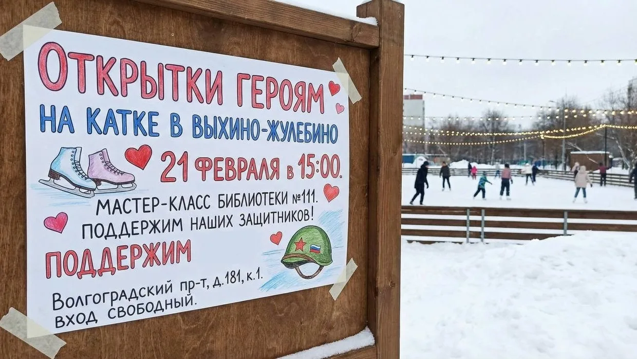 21 февраля в 15:00 приглашаем всех на каток (Волгоградский проспект, д.181, к.1). Там состоится особый мастер-класс от библиотеки №111 — будем создавать поздравительные открытки для участников специальной военной операции, которые проходят лечение в госпиталях.