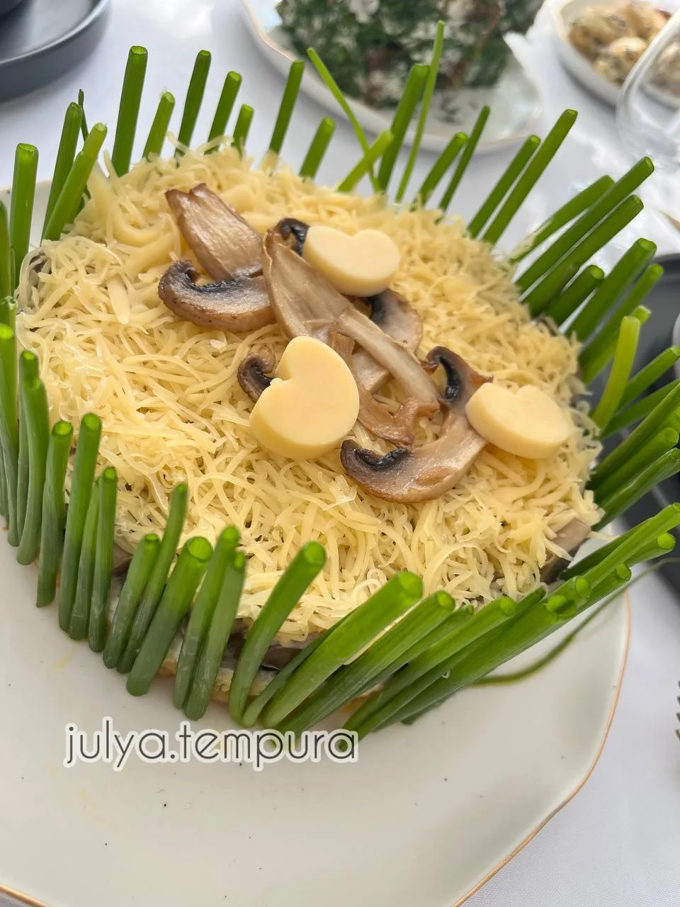 -украшения на свой вкус , у меня грибы / сыр / зелёный лук